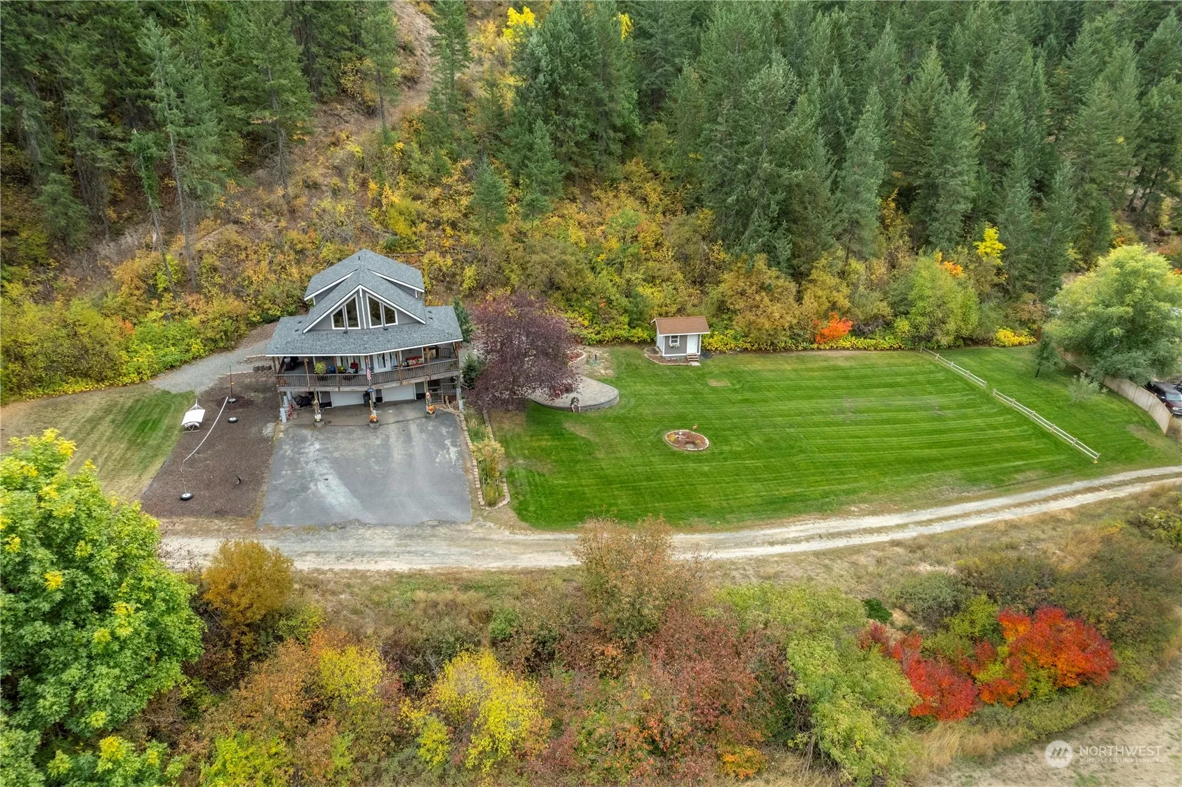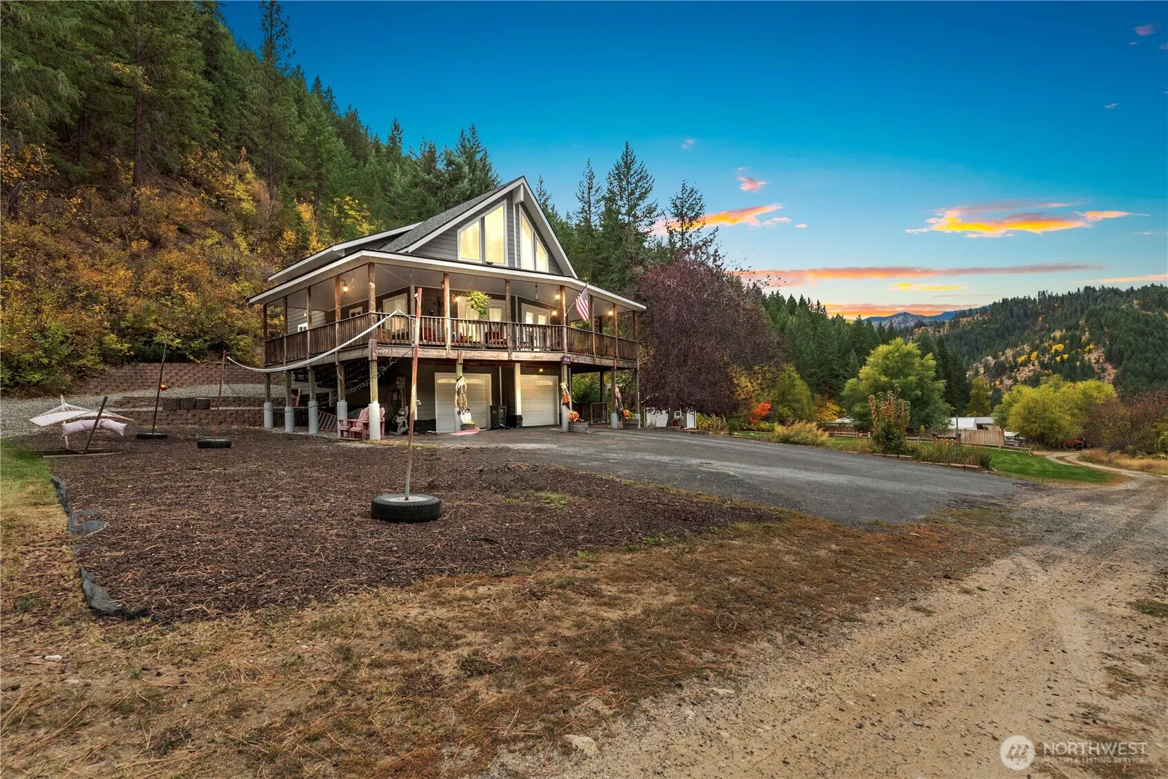 Experience the serenity of your own mountain retreat. Nestled on 20 acres this home is a haven for outdoor enthusiasts, offering ample hiking and exploration. As you step inside you’ll be greeted by an abundance of natural light that fills the spacious kitchen and dining area. The inviting living room features a cozy gas fireplace, for those chilly evenings. Venture upstairs to find a delightful loft that provides extra space for work or relaxation. From the dining room you will step outside to a covered wrap around deck ideal for entertaining, or simply enjoying the mountain air. With ample parking and storage available in the attached 2 car garage this home offers everything needed for a tranquil lifestyle in nature.