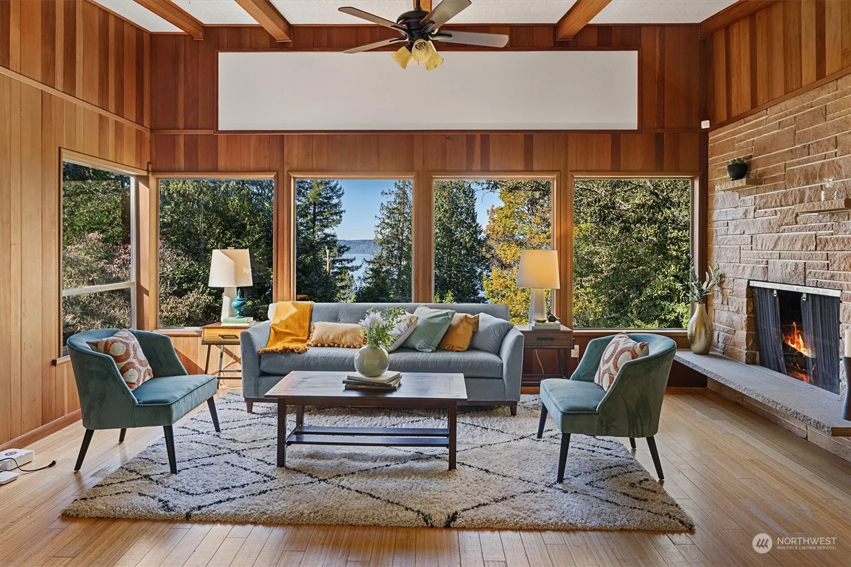 This is one of the coolest mid-century modern homes, beautifully refreshed on a large secluded lot, minutes from all the indie shops and restaurants in Old Burien! Features include a spacious living room with vaulted post-and-beam ceilings, massive sandstone fireplace, and filtered views of the Sound, open to a dining room with French doors leading to a large patio, a modern light-filled kitchen with new appliances and sunny breakfast nook, and eco-friendly bamboo floors plus Marmoleum floors in the kitchen and baths! There’s a huge private and tranquil front yard, and the high-ceilinged basement offers plenty of space for play, home offices, and a 2nd kitchen to make guests feel at home – with plenty of off-street parking for visitors!