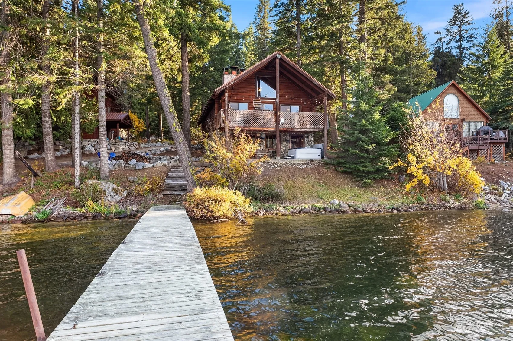 Escape to this charming waterfront log cabin on the shores of Fish Lake. Offering rustic charm & modern comfort, with ample indoor & outdoor spaces. The property features a Private Dock, Large Covered Deck – Perfect for morning coffee or evening gatherings. A lower Patio, a great spot to enjoy panoramic lake views & the hot tub . Two Fireplaces to Cozy up to in the evenings. 3 Levels of Living – Plenty of room to spread out, including a pen-concept main level with stunning lake views, Loft, unfinished lower level with walk-out access to the patio. Fish Lake offers snowmobiling from your door, fishing, hiking, access to the trail system and a short drive to Leavenworth or Plain. One car garage/shed for all your toys & storage.