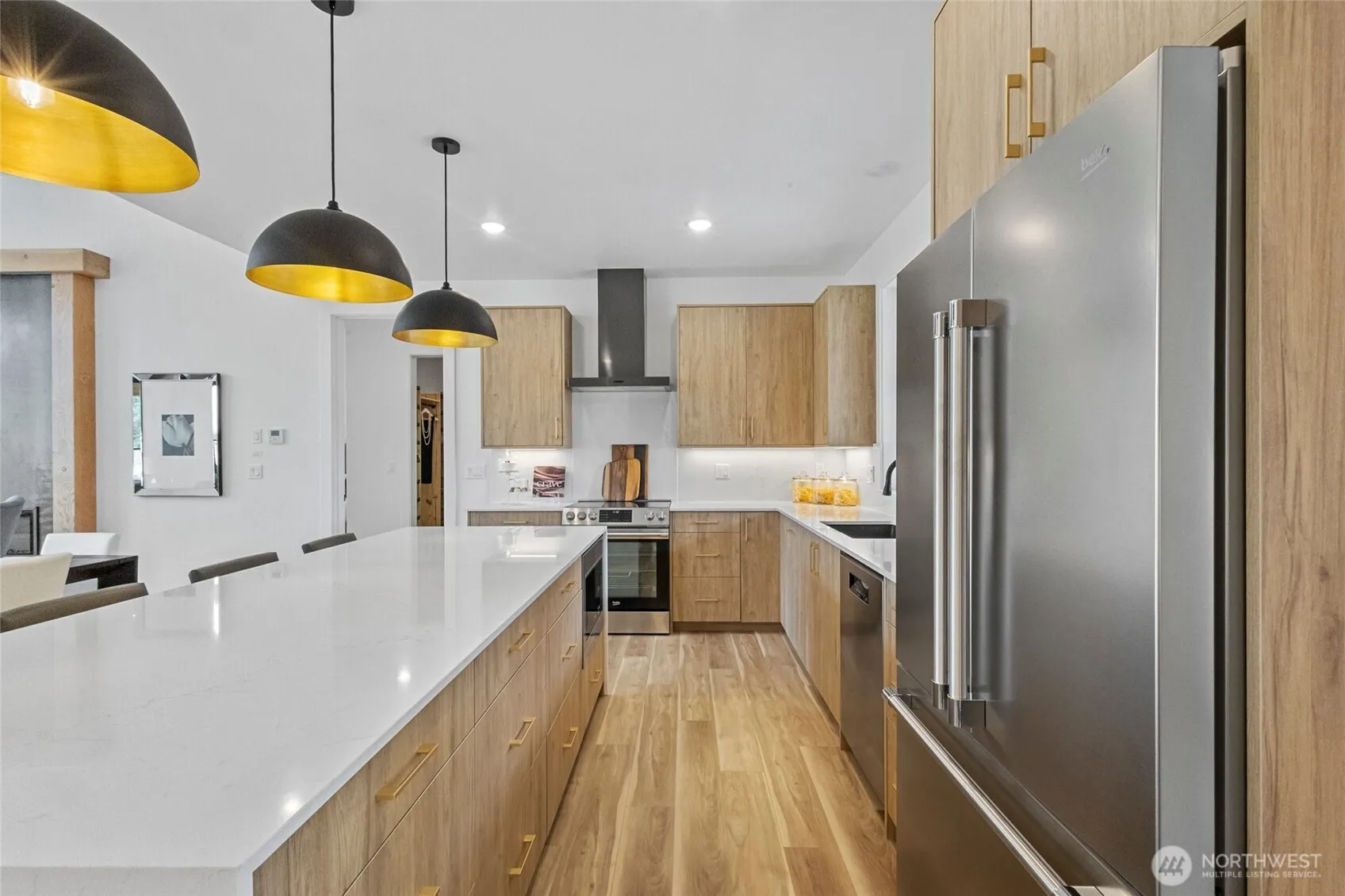 This exceptional rambler blends sophisticated design w/ practical features offering ultimate one-level living. Featuring vaulted ceilings that amplify the sense of space & light throughout & a gourmet kitchen w/ high-end appliances & quartz countertops. The open-concept design flows effortlessly into spacious living & dining areas, ideal for everyday living & entertaining. Beautifully appointed bathrooms showcase exquisite quartz showers for a spa-like experience at home. Enjoy the expansive covered patio, perfect for relaxing or entertaining, while taking in stunning territorial views. Additional highlights include a drive-through garage & close proximity to downtown Lynden & the Canadian border.