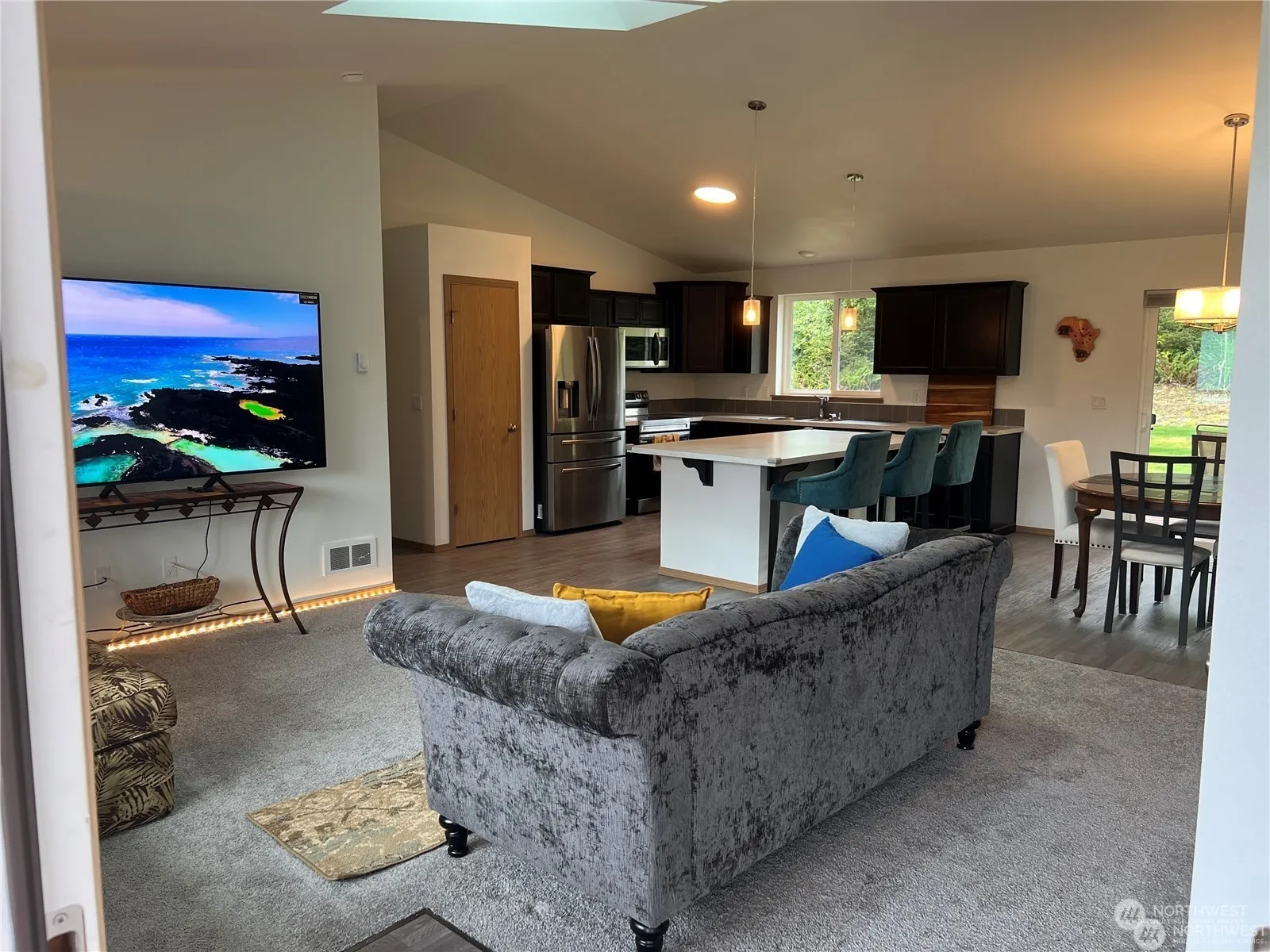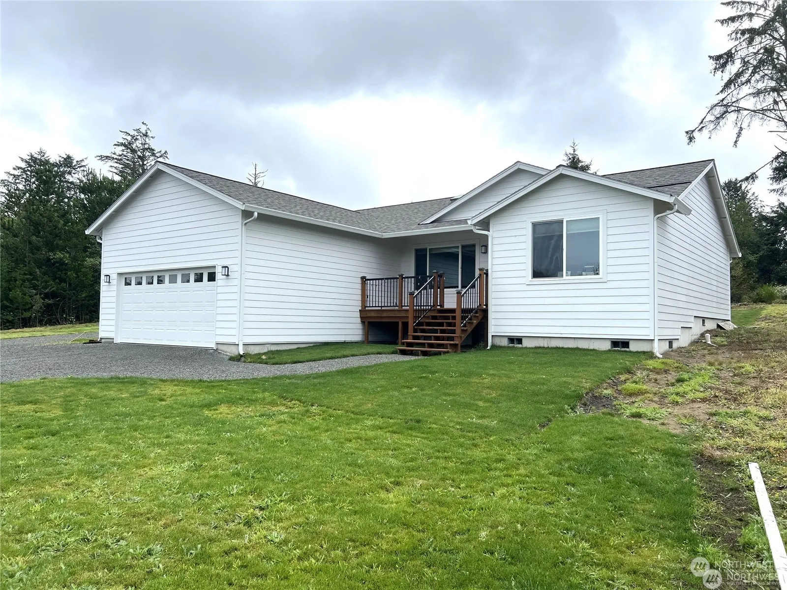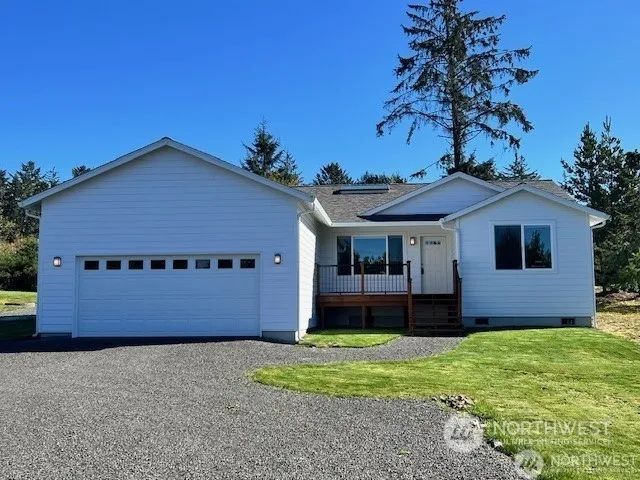 New construction 2023. 5.4 Acres with house in a sunny cleared area. Westerly view of Pine Trees and sunset. Very private 2.5 Acres behind house with deer and wildlife. Stainless steel appliances / warranties.5 minutes to stores, 10 minutes to Bay Street beach approach. 413 square feet of deck, covered porch off dining room. Nice lawn and firepit area. Garage 2 story room for storage. Vaulted ceilings, skylights in Great Room.