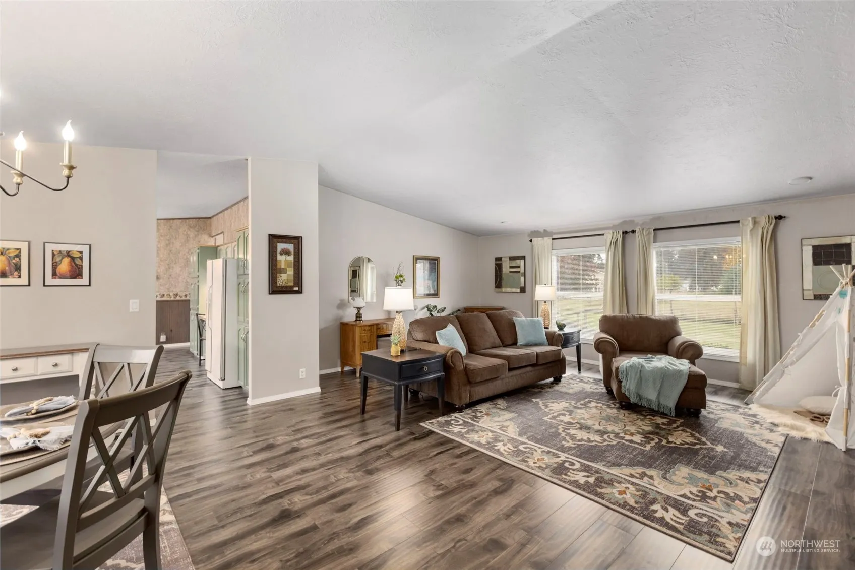 Wonderful opportunity to own a 3 bed/2 bath home w/large shop on 1.34 peaceful acres. This home has been lovingly cared for & offers an open layout w/many updates. NEW luxury vinyl tile flooring, NEW lighting, NEW paint, plus NEW faucets, toilets, mirrors & hardware in baths. This home comes fully furnished, including NEW drapes & area rugs. Spacious master suite boasts a large walk-in bath & two walk-in closets. Eat-in kitchen offers loads of storage, prep island & all appliances that stay. Fully fenced lot w/sprinkler system, covered porch overlooking a fun pond feature & fresh landscaping. Huge workshop w/3-car garage makes for excellent storage & perfect potential for your home business. You really can have it ALL!