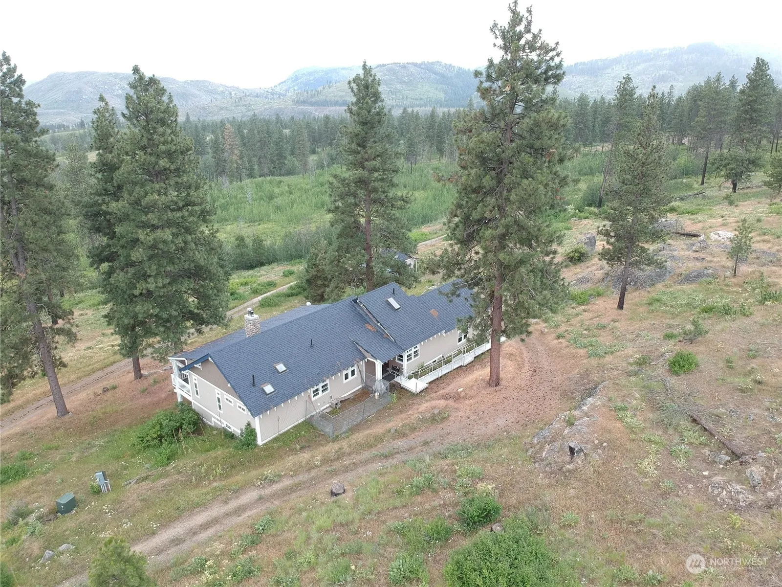 PRIVACY & SECLUSION surrounds this Custom 3 bed/1.75 bath home on nearly 20 acres in the Loup Loup area west of Okanogan. Large Great room w/pellet stove, dining area, door to composite deck w/porch swing, vaulted ceilings w/fan; kitchen w/granite tile, farm sink, breakfast bar, appliances, pantry; Utility room with W/D, sink, ironing board; primary bed/bath suite w/step-in tiled shower, walk-in closet, bidet, skylight. Nearly full unfinished daylight basement plumbed for bath, room for more bedrooms, family room & more. Bamboo & tiled floors thru-out, skylights, heat pump. Attached 2 car garage, natural landscaping, wheelchair accessible ramp, 5-run dog kennel/barn – plumbed & wired. Owner financing possible. $495,000 MLS-2302177/H-3612