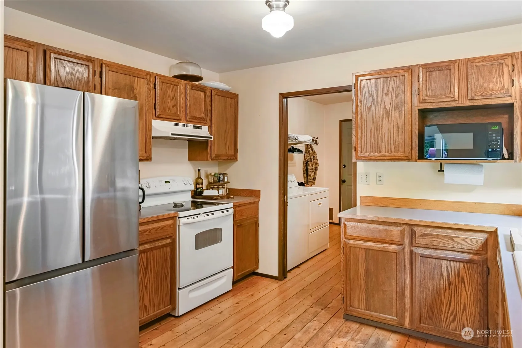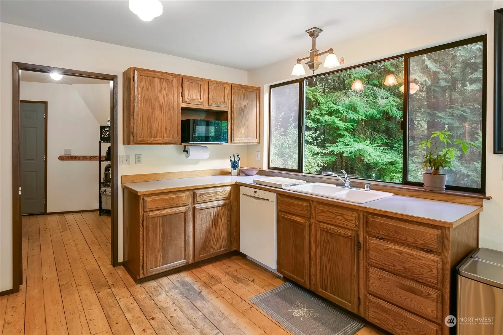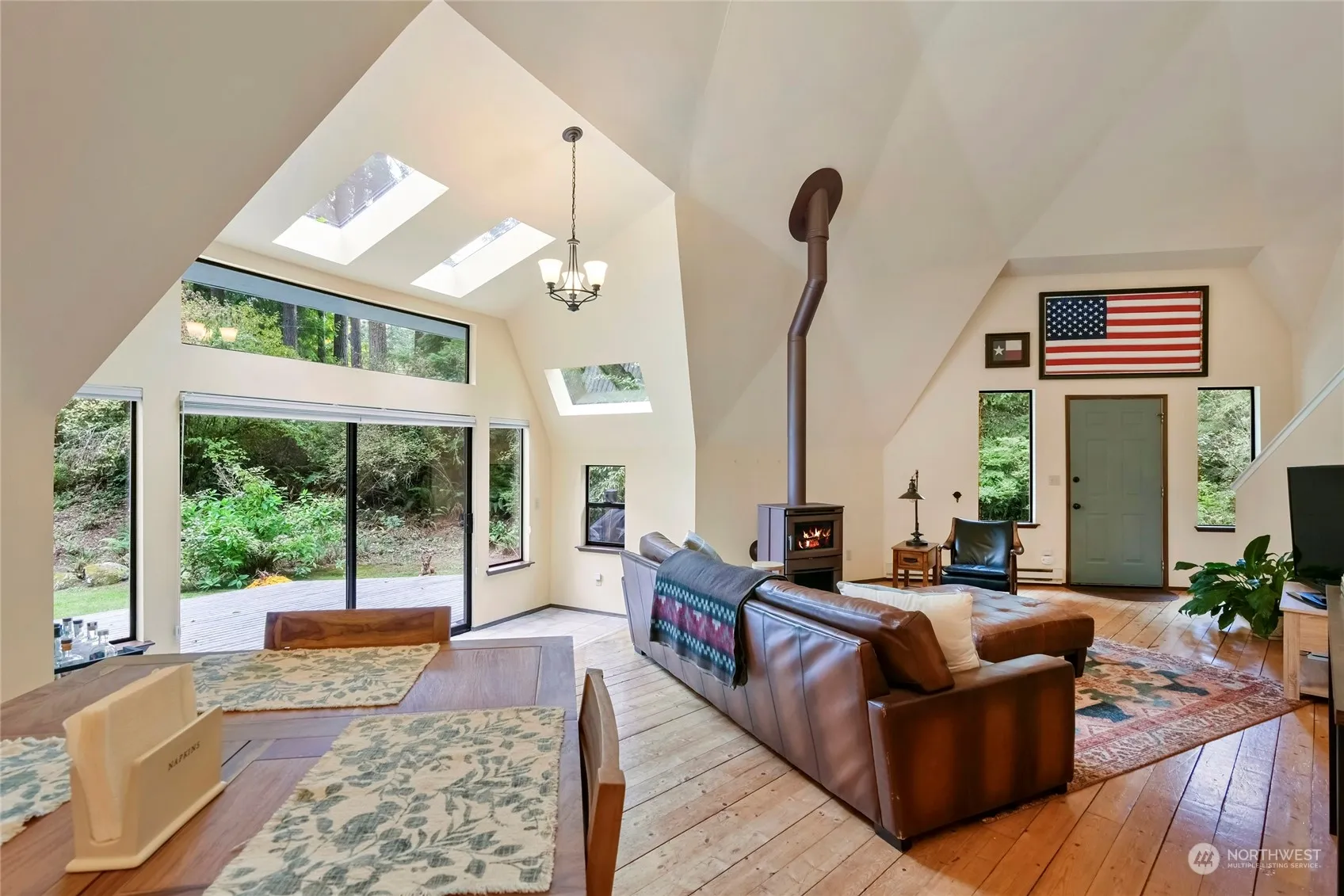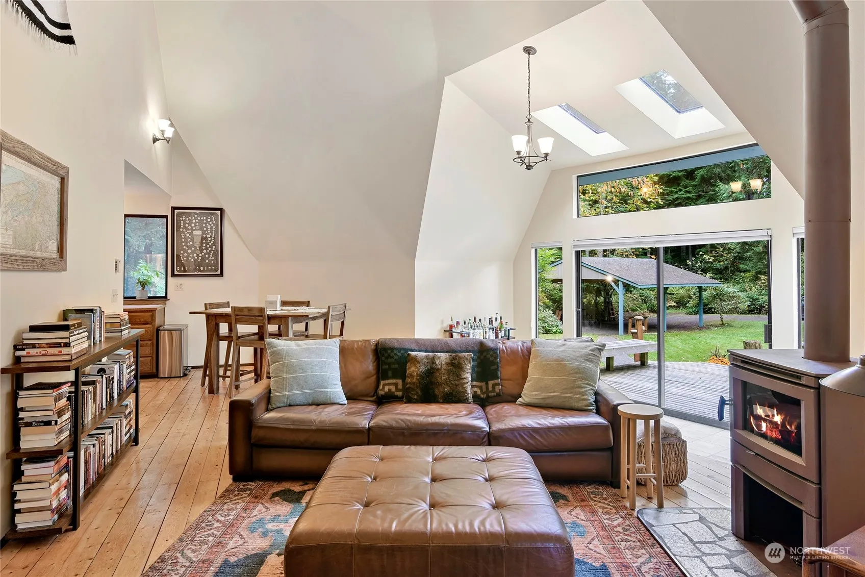 Experience peaceful living in this charming 3-bedroom, 1 3/4 bath home, set on a serene and private 2.4-acre lot just minutes to downtown Kingston and the ferry terminal. This beautiful property offers the perfect blend of seclusion and convenience, with plenty of space to relax and enjoy nature, while still being close to local shops, dining, and schools. The home features an open concept floor plan that connects the living, dining, and kitchen areas seamlessly. Upstairs, the primary bedroom boasts skylights, offering bright and natural lighting. The upstairs loft offers additional storage and office space. This property is ideal for those seeking privacy and to be surrounded by nature, while still having easy access to town.