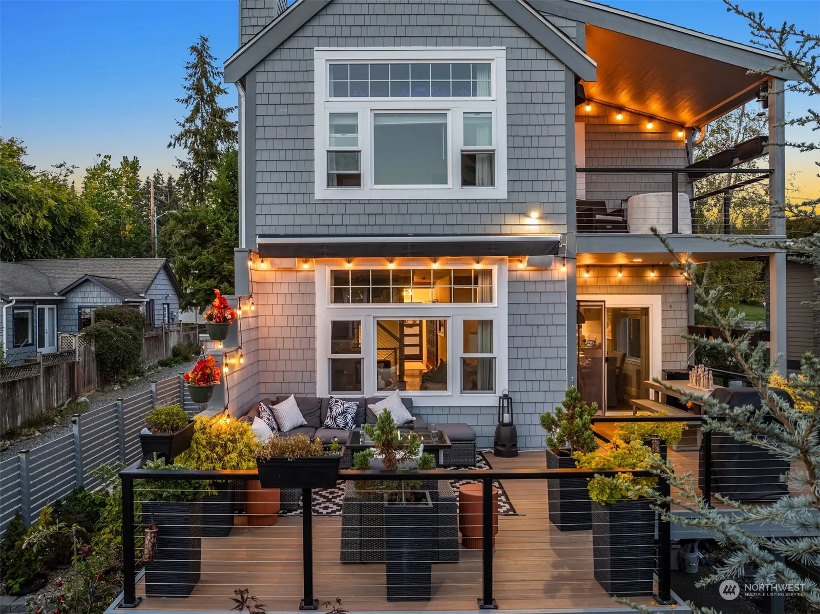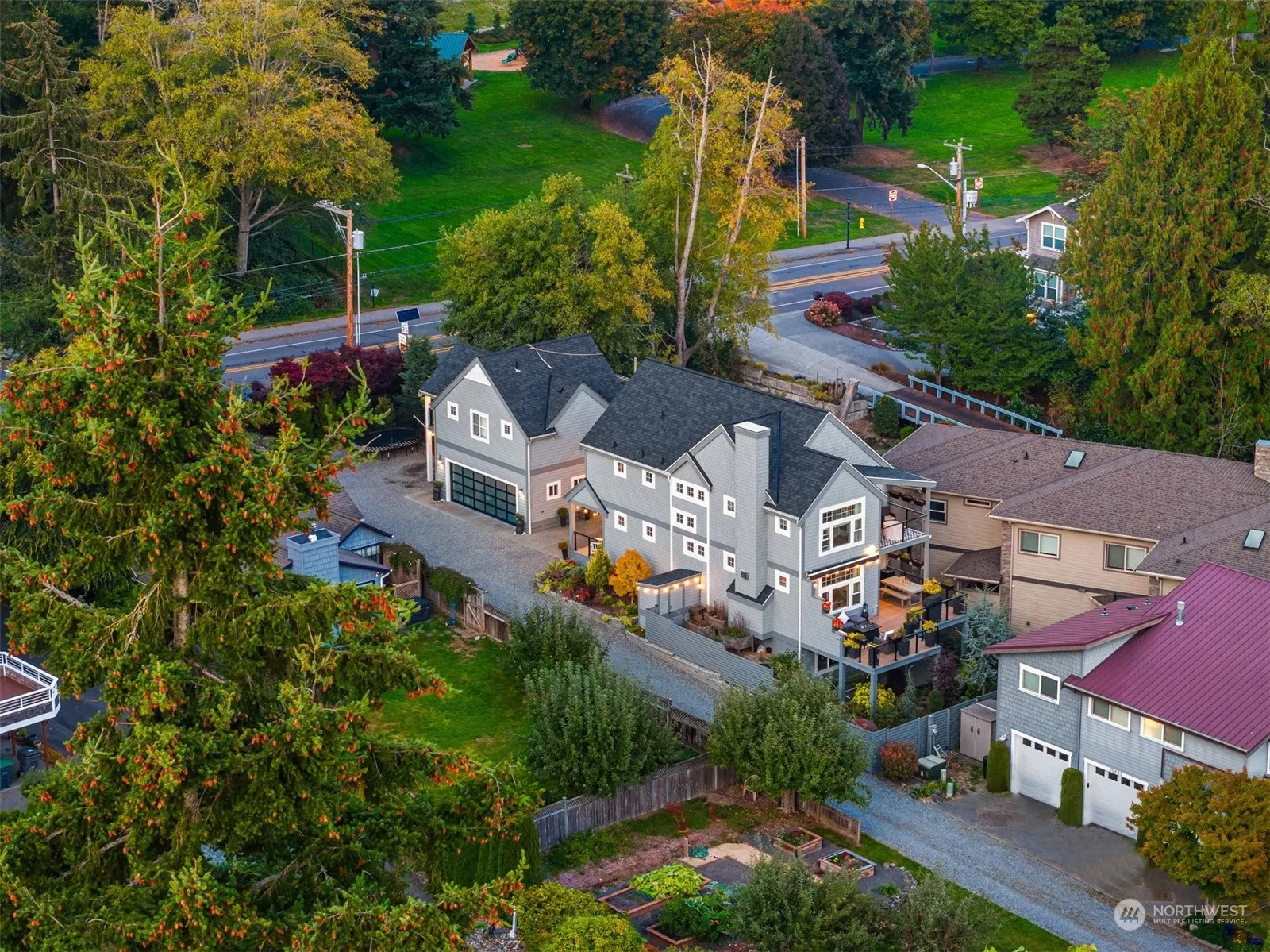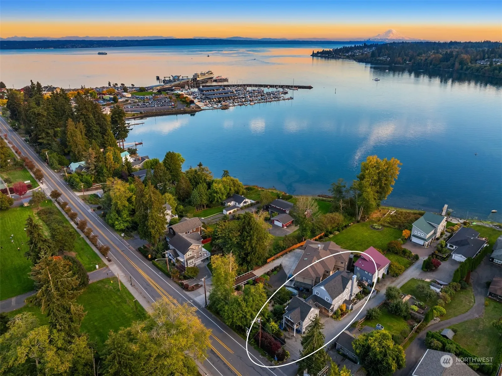 Stunning modern living at its finest in this captivating Cape Cod-style home located in the sought-after heart of Kingston, offering the perfect combination of walkability, water access + fast foot ferry commute to the city. Featuring high-end finishes throughout, the main level includes a gas fireplace, sleek kitchen + dedicated home office. Upstairs, the spacious primary suite boasts a private covered deck with views of the Sound + 2 additional rooms. The lower level provides a large versatile space with a kitchenette and access to a lush garden. 528 sq. ft. complete ADU above the garage offers excellent guest or rental income potential. Just minutes from shopping, dining, the fast ferry to Seattle, and a kayak slip at marina. A must-see!