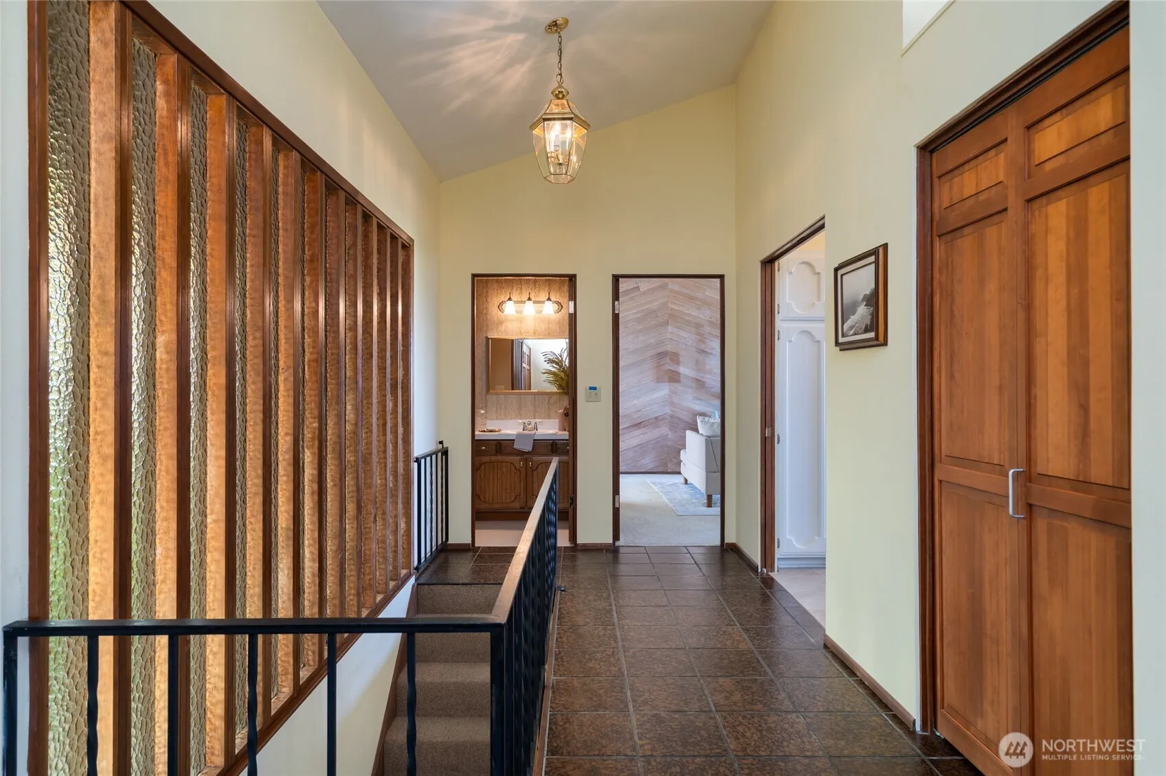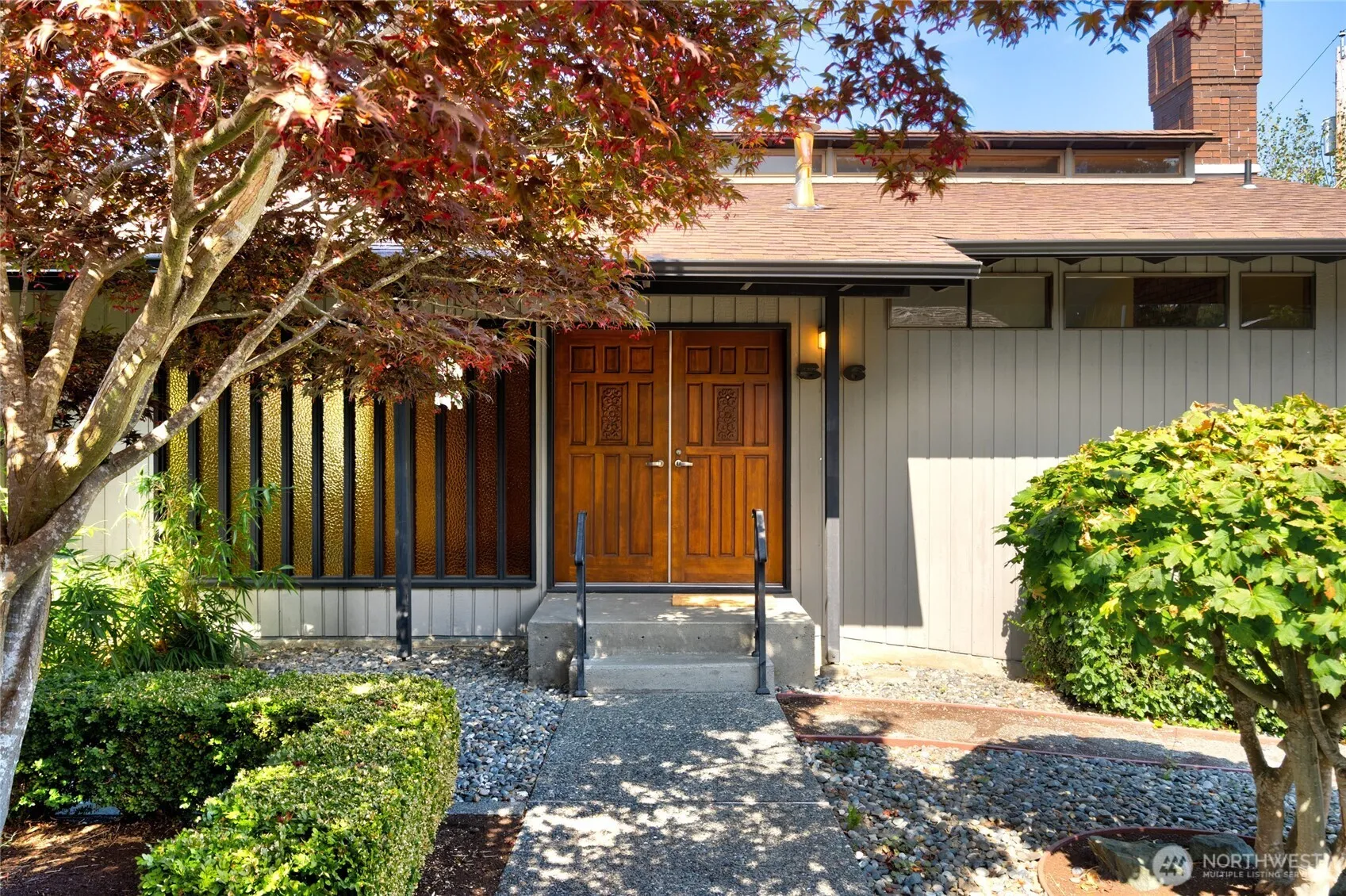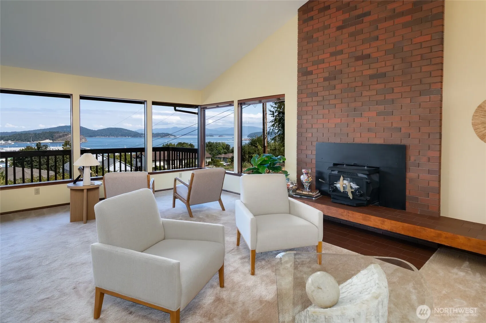 Mid-century charm w sweeping 180 degree views of Anacortes at 516 39th St. This architectural gem is perched at the top of a sweeping hill with one of a kind views of the Anacortes Marina, Baker & the downtown. You are invited in w/ a courtyard that provides access to both the detached 2 car garage & entry way. Step in & feel immersed in the views w large windows, vaulted ceilings, & plenty of space for entertaining. Main level includes cozy den with fenced patio+deck access, galley kitchen w/ bar space, living room & powder bath. Lower level includes primary w walk-in closet + ensuite, 3 bedrooms + full bath & laundry. From the warm wood paneling to amber windows – this thoughtful mid-century gem is just waiting for you to call it home.