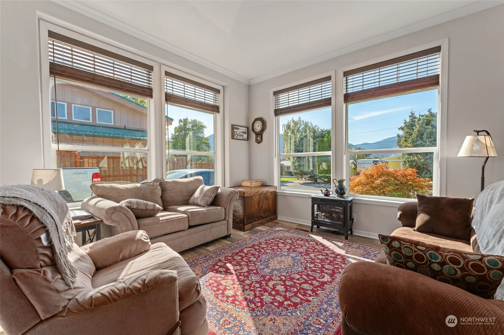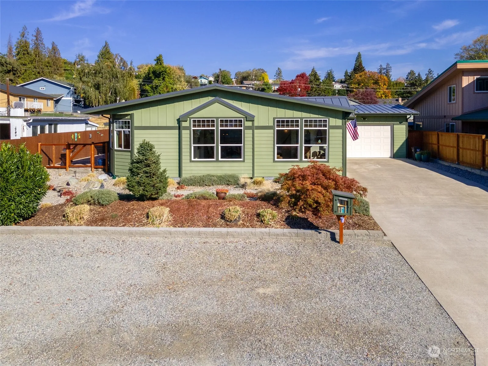 You will love the spacious floor plan in this 2000+ square foot Manson home! You are welcomed by a comfortable living room/great room with surrounding windows to let the 300 days of sunshine in. The kitchen is huge with tons of counter space, an island, and a walk in pantry. Adjacent to the kitchen is a bonus space with a sliding glass door to take you out to a cozy, covered outdoor space. This home has 9′ ceilings and lives large! Upgrades on the interior include cordless blinds throughout, LVP flooring, and the exterior has been painted recently, new metal roof, low maintenance landscaping and is fully fenced. STR’s are allowed in this area, very close to Manson’s popular downtown corridor and Lake Chelan.