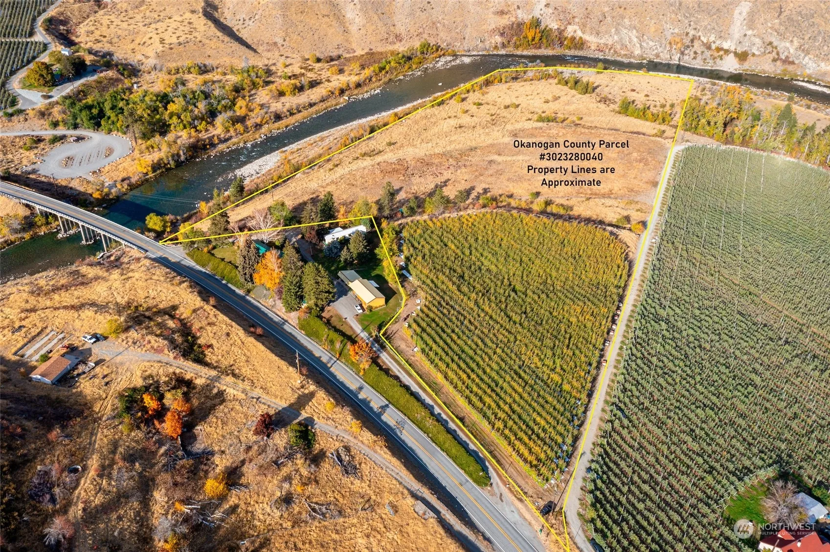 Stunning 16+ acre no-bank Methow Riverfront property, protected by the Methow Conservancy, with a 1 acre building envelope for a peaceful riverfront home and an agricultural business opportunity. Enjoy the bounty & benefit of 3 producing acres of the highly desirable SugarBee apple & newly installed irrigation system. Robust well pumping 40+ GPM & Certificated Water Rights. This property blends innovation & preservation, creating endless opportunities in a breathtaking setting. Whether for farming, relaxation, or building your legacy, the sky’s the limit on riverfront paradise. No timeline to build, install an RV site and build later. 2 legal ingress/egress off HWY 153.