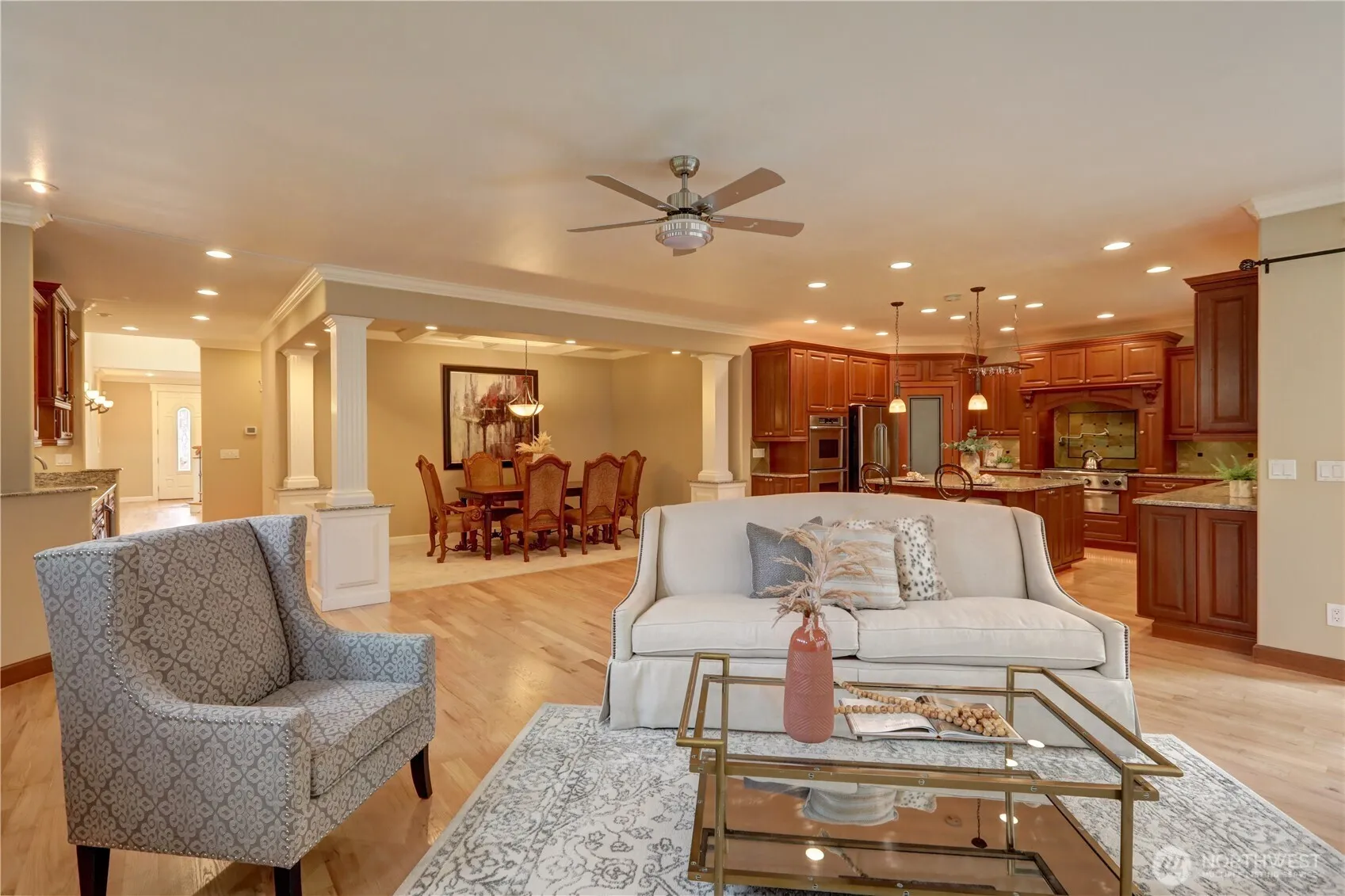 A truly breathtaking, unique great room design, absolutely spacious home impeccably maintained and located in the Northshore School District. Small yard, big home loaded with interior extras. Extravagant painted millwork, central vacuum & hose, extensive cherry cabinets, boxed beam ceiling & columns in dining area, built-in buffet w/wet bar & wine cooler + stunning island kitchen w/6-burner gas cooktop & slab granite. Huge master suite w/sitting room, double faced fireplace + awesome master spa bath, separate vanities & 9-head shower. Extra large additional bedrooms w/dual vanities bath. New carpet, refinished hardwood floor, new interior paint. A must see! Pre- inspected!