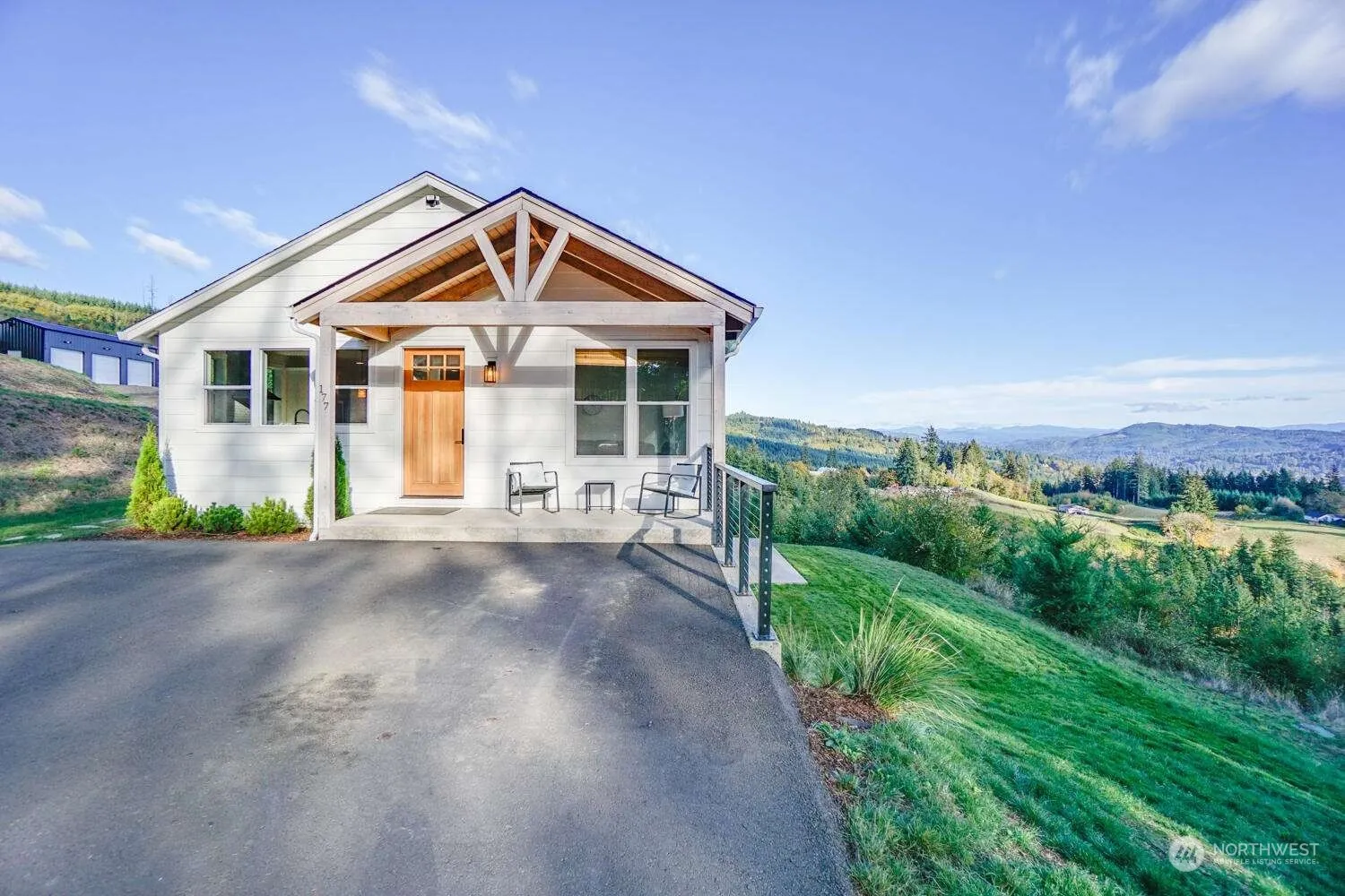 This stunning 3 Bed – 3 bath home with daylight basement located in Woodland, Washington was built in 2022, and offers a spacious and modern living space. This home features views into the Lewis River Valley, Mt Hood, & Mt Jefferson from nearly every window. Cozy open concept living with laundry and primary suite on the main floor. The kitchen features quartz countertops. The large master suite has a walk-in closet, tile shower and double vanities. The basement level features: Bedroom, Office, Full Bath with Sauna, Sitting room and Home Gym. Basement concrete patio with wiring for hot tub. Elevated back deck to enjoy the views. Detached garage. 3.3 acre lot. Less than 15 minutes to I-5.