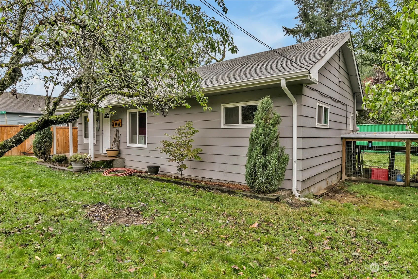 Welcome to this charming 2 bed/1 bath bungalow, beautifully updated with custom farmhouse finishes! The kitchen boasts elegant trim work that complements a striking wood beam separating the kitchen and living area. Convenience is key with a stackable washer/dryer relocated near the bedrooms. Enjoy privacy in the fenced front yard and a spacious, fenced backyard with a covered porch and skylight—perfect for entertaining. Green thumbs will love the garden space and fruit-bearing trees (Bing & Rainier cherries, plum, and Japanese pear). Enjoy ample storage with two shipping containers, RV/boat parking, and a detached 1-car garage. Located near all the amenities in Ravensdale, Black Diamond, and Enumclaw, it’s close to everything!