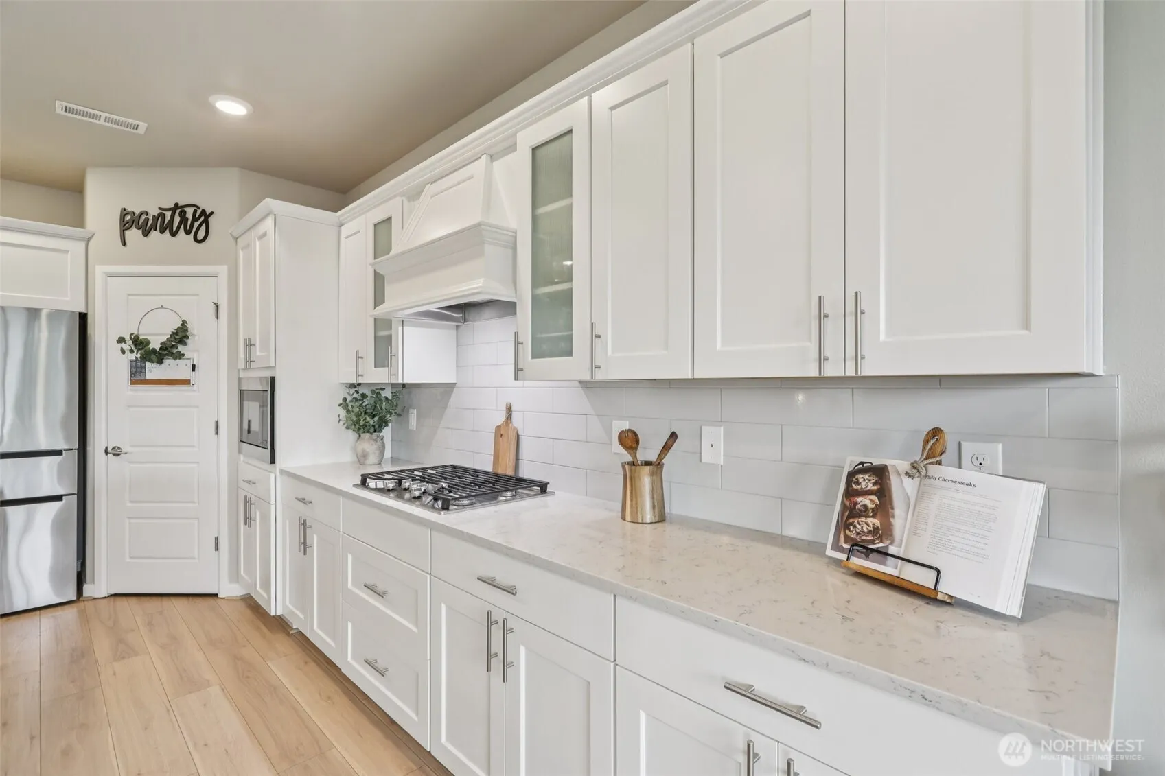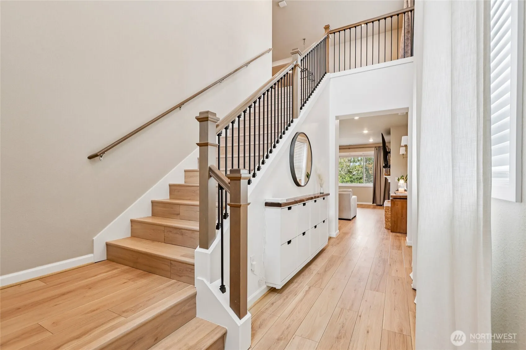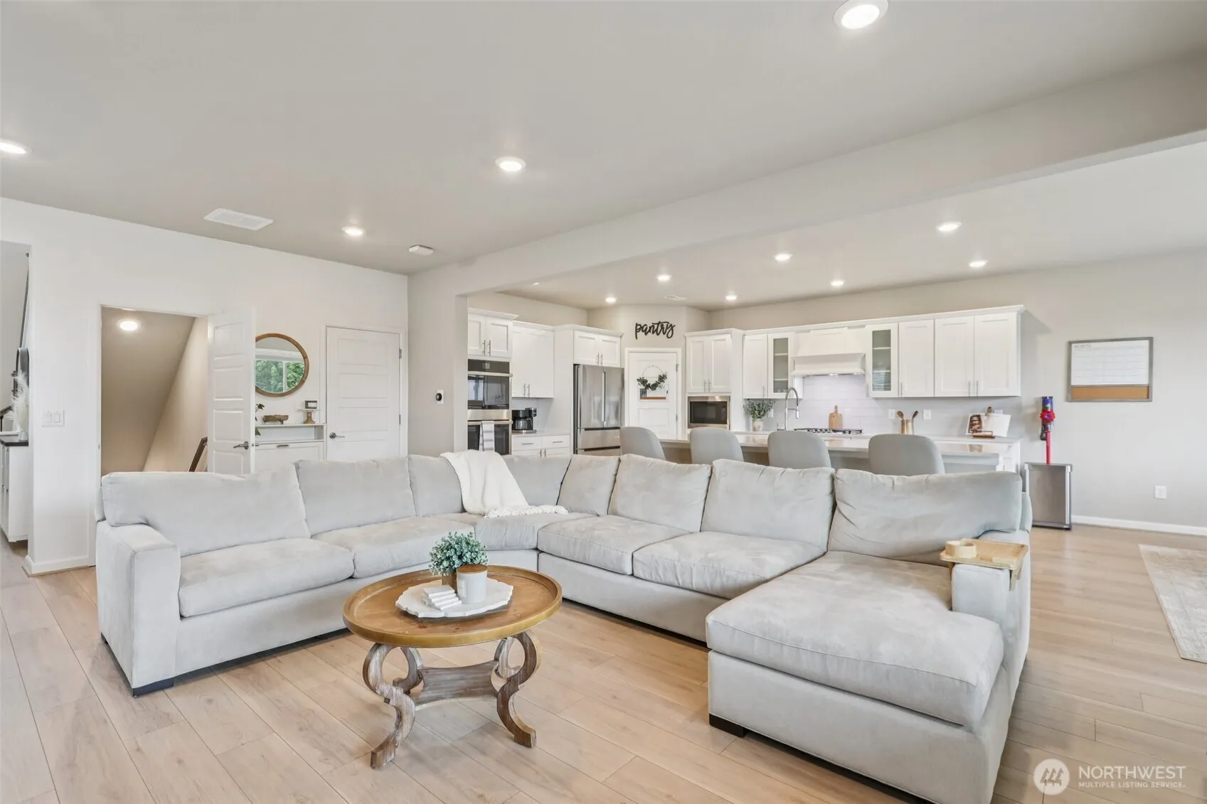 MORTGAGE SAVINGS MAY BE AVAILABLE FOR BUYERS OF THIS LISTING! Experience exceptional comfort and modern style in this beautifully upgraded home. Enjoy luxury vinyl plank flooring throughout the stunning great room, a premium Bosch appliance package, and a custom built-in closet system in the Primary suite. On the finished lower level, a dedicated movie room comes complete w/Valencia theater seating and built-in riser. Stay connected with Wi-Fi CERTIFIED design, and charge your EV with the integrated station. Relax outdoors on an extended deck with Olympic Mountain views, or explore scenic walking paths to the nearby lake and future town center. Includes central air, expanded privacy fencing, and thoughtful storage inside and out!