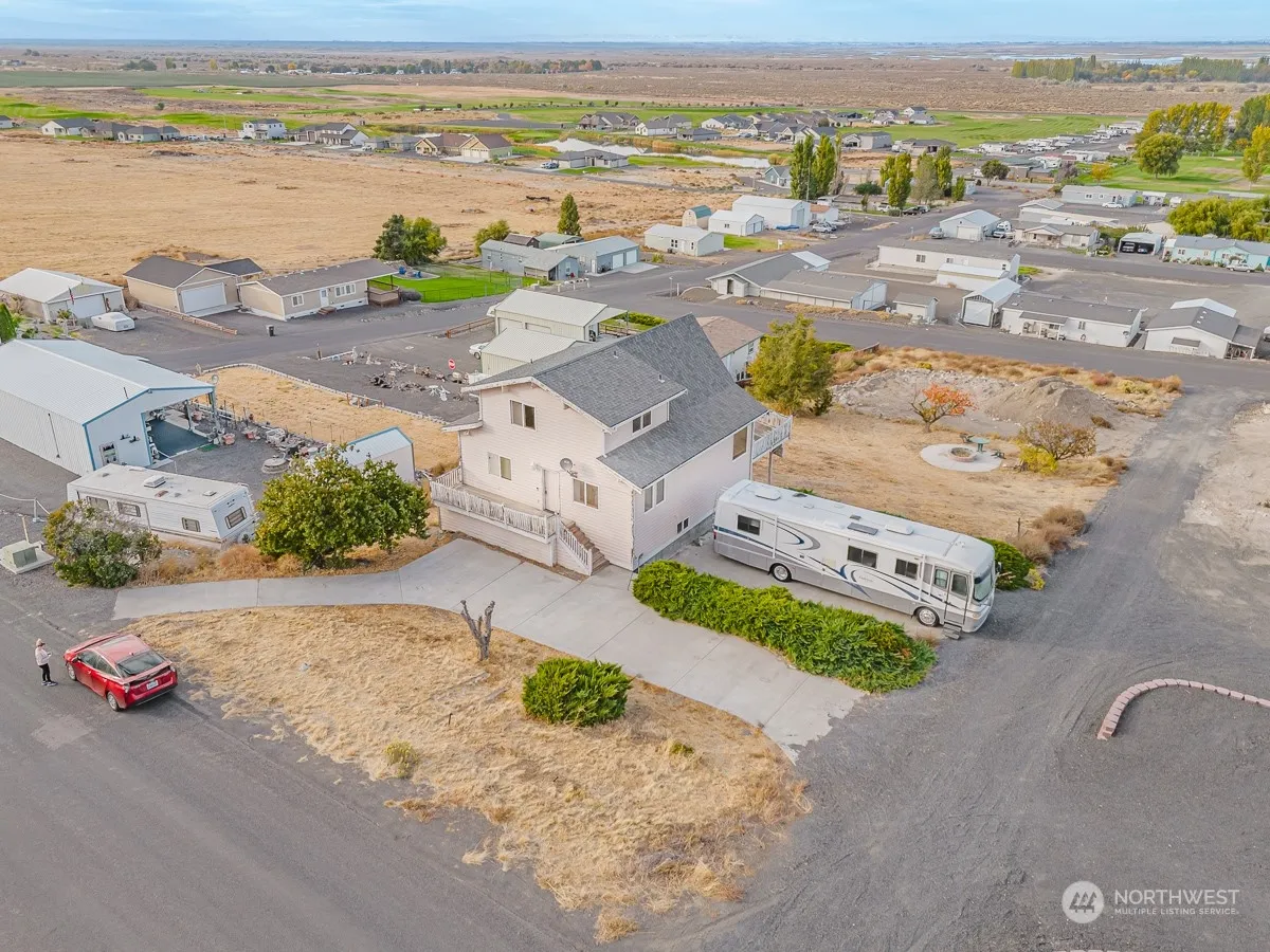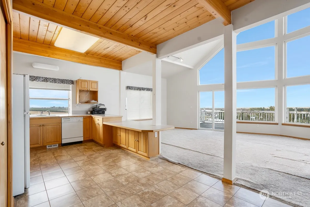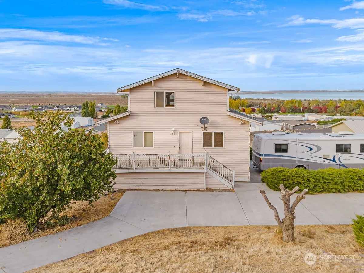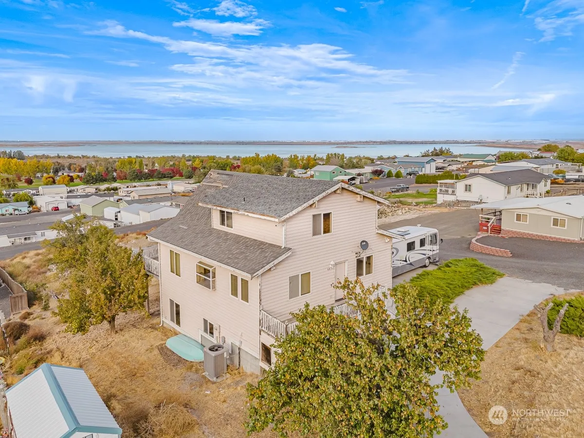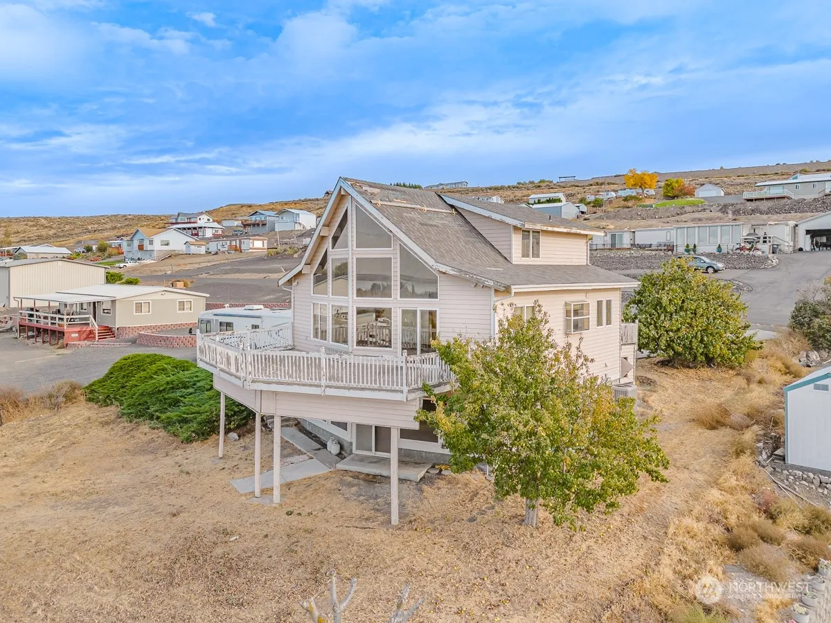 Stunning stick-built home on the hill above Potholes Lake with phenomenal views of the lake and golf course. Main floor with 2 bedrooms; full bath; kitchen with cedar ceiling accents & breakfast bar; and living room with panoramic views. Spacious view deck off the living room. Upper floor with a large loft & attached full bath. Basement is unfinished but includes a ¾ bath; laundry & countless possibilities. Covered patio off the unfinished basement. Outside – the perfect space for the firepit & multiple outdoor activities. *Home is price is based on condition. Home sold as is.