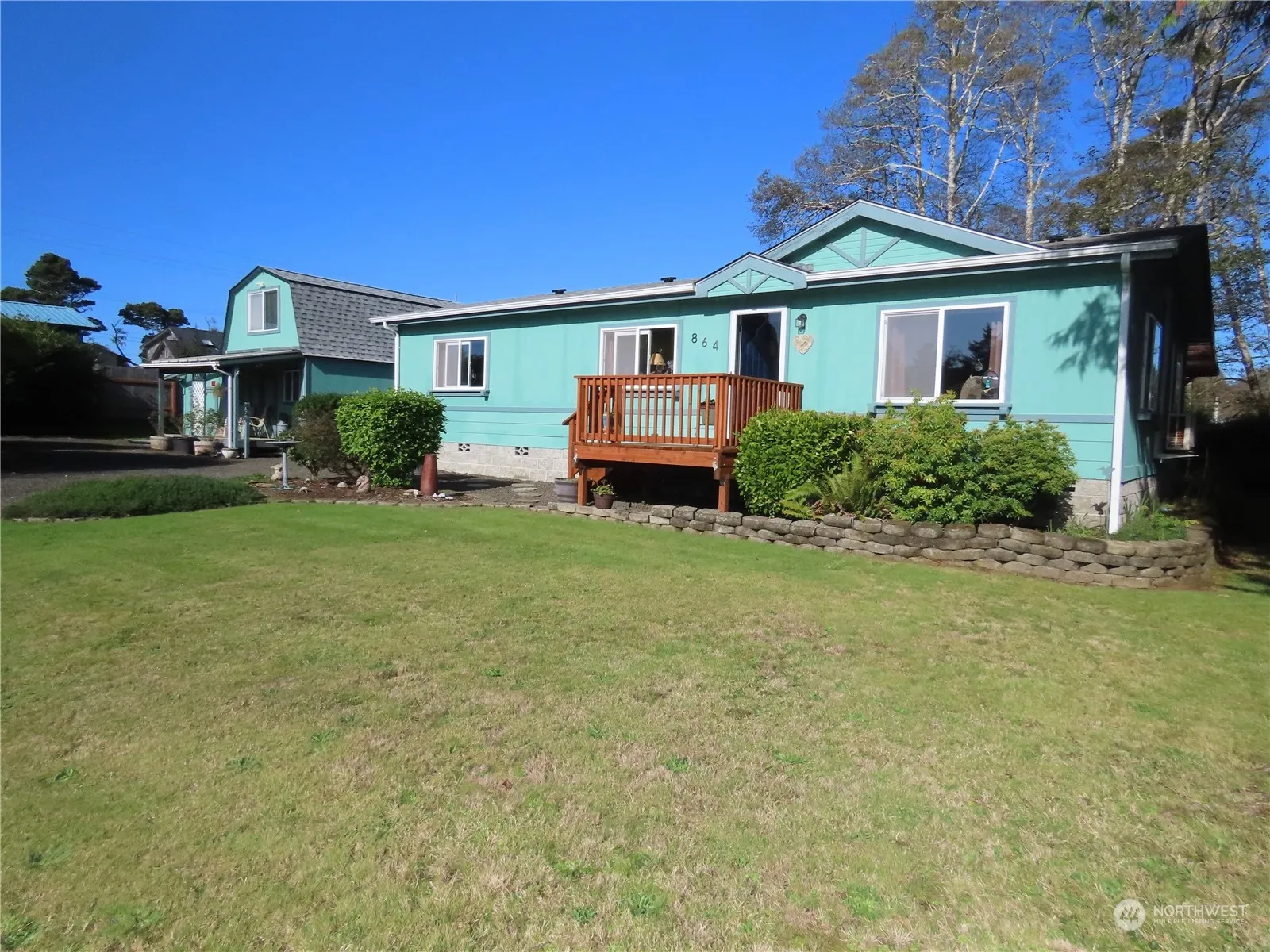 This beautiful home is located close to the beach & offers an additional building! The home has two nice bedrooms & 2 full bathrooms, & the extra building has a 1/2 bathroom, & that building can be used as an additional living space! It also has extra rooms for storing items & the upstairs area can easily be used as a bedroom! The main home also features a dining room, living room & a beautiful large, covered deck out back! The property also features extra buildings for extra storage & is partially fenced! The home has been nicely cared for and is ready for full time living or part time living or it could be a great nightly rental home! Beach access is right down the road off to the right & the beach has 18 miles of relaxing & hanging out!