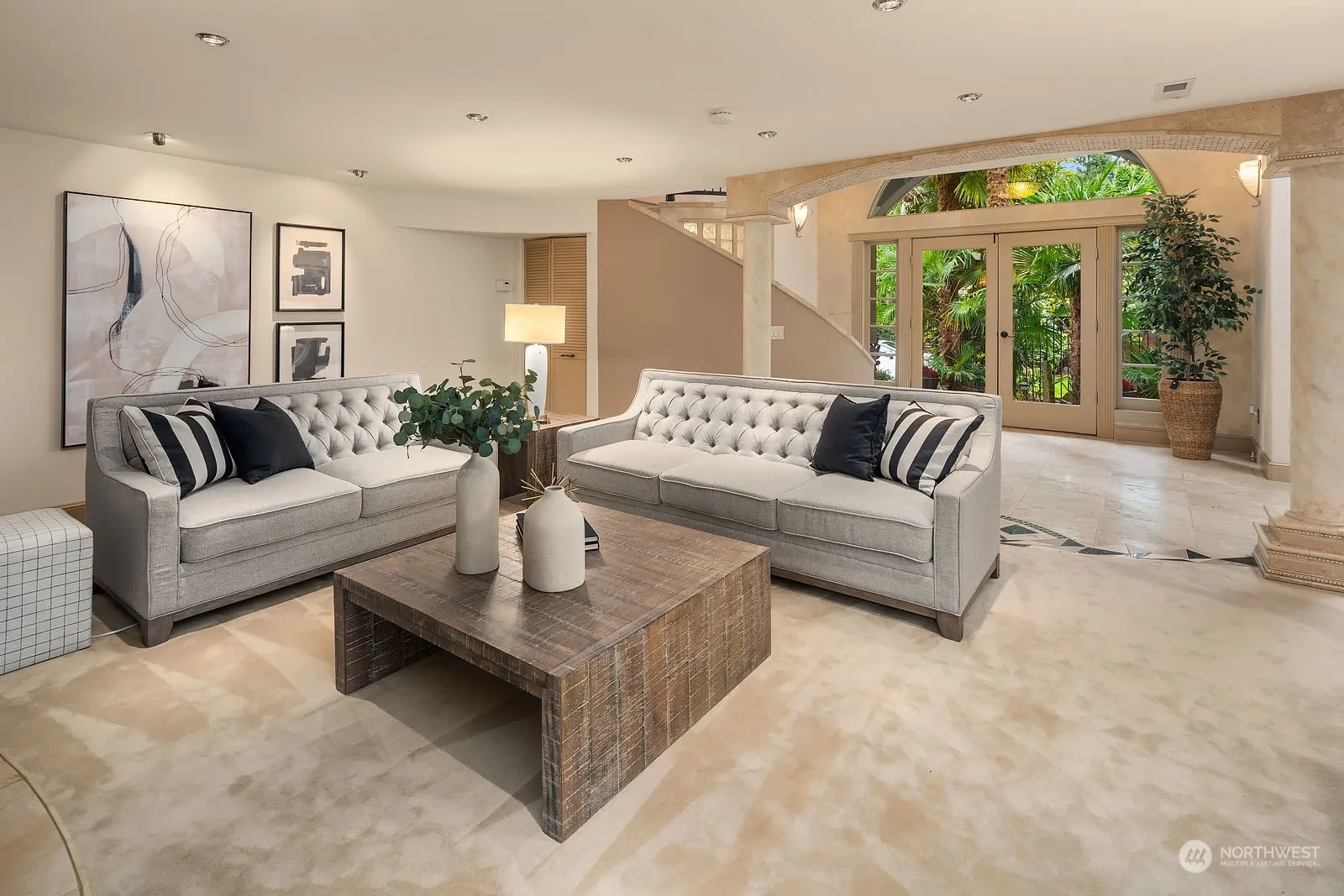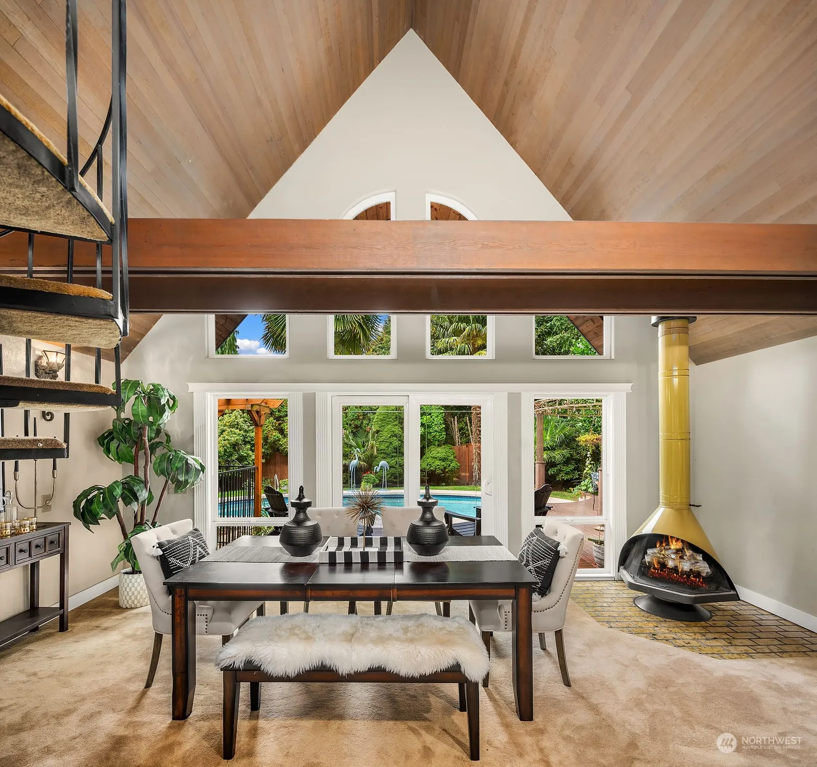 Come home to resort-style living on coveted Mercer Island! Tucked away down a private drive, this spacious retreat is ready for your finishing touches with all the right spaces to make your own. A soaring foyer dressed in travertine tile welcomes you in. Gather with friends in the fireside living room or continue on to the vaulted lodge-style dining/family room with cozy wood stove and adjacent kitchen. The deck and inviting in-ground swimming pool are ready for next summer’s parties..surrounded by swaying palm trees and lush landscaping, you’ll feel like you’ve escaped to your own tropical oasis. At the end of the day, sweep up the curved staircase where 3 bedrooms await, including your luxe primary suite w/vaulted ceilings and fireplace.