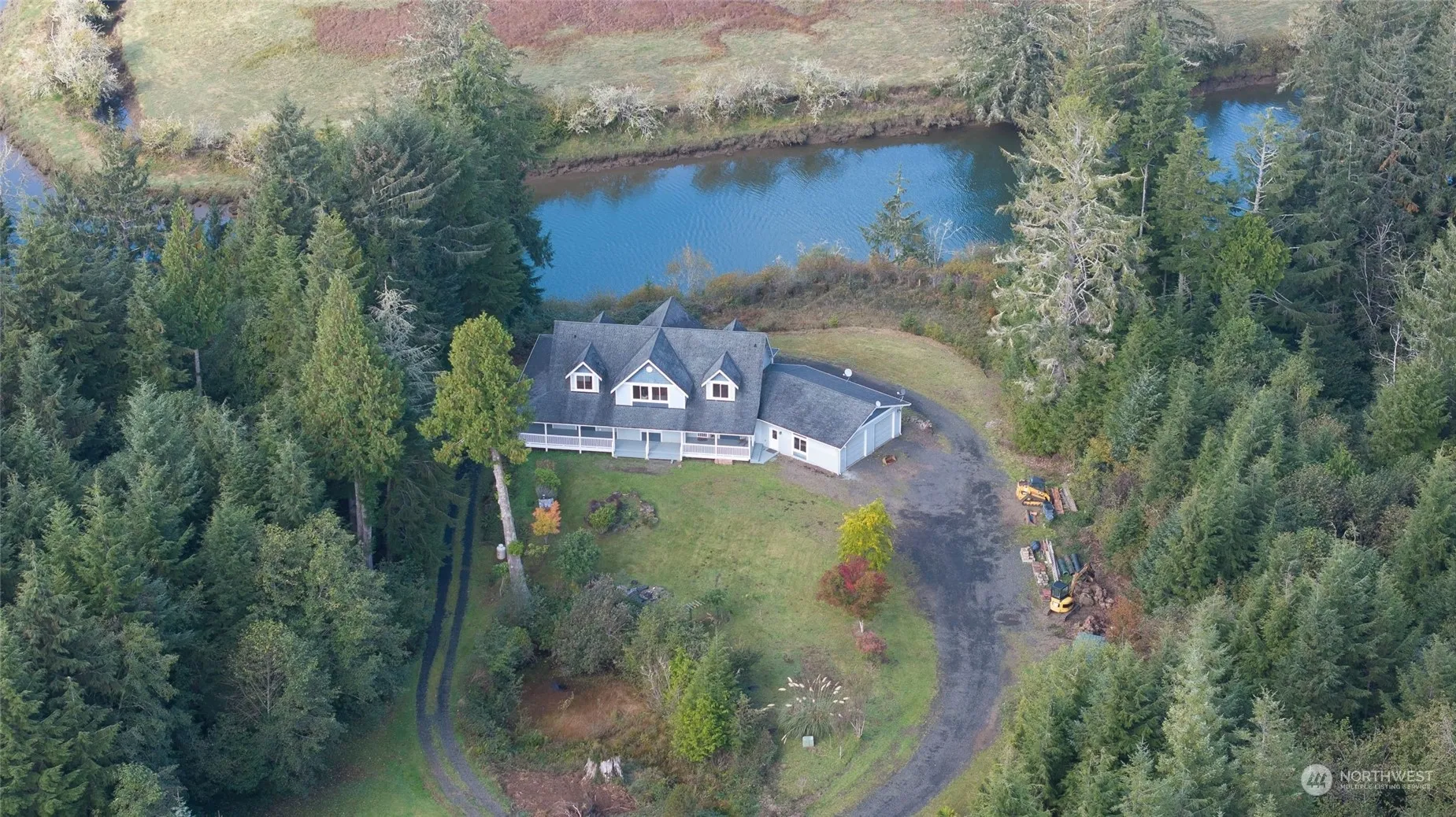 Stunning Custom Home is located in Private Setting with Tranquil Panoramic Views, 440 + Ft of South Fork Palix River Shoreline. Fishing, Hunting, Wildlife Observing Awaits. The Generous 8.38 Acres provides ample space for Gardening, RV Covered Parking w/Hook Up, EV Hookup, Stunning River & Bay Views Plus More. Impressive Vaulted Ceilings, Solid French Doors, Large Upper Loft Living, Plus 2,280 sq ft Partially Finished Daylight Basement. Main Floor features a Kitchen fit for a Chef, Primary Suite & Custom Shower, Laundry Room, Living Room w/Gas Fireplace, Dinning Room, Den w/half Bath. The 2nd Story Features 3 Bedrooms & 2-3/4 Baths. Wrap Around Porch,Wired for Generator, Atrium & MORE! Additional 5 acre Tract-B available for purchase.
