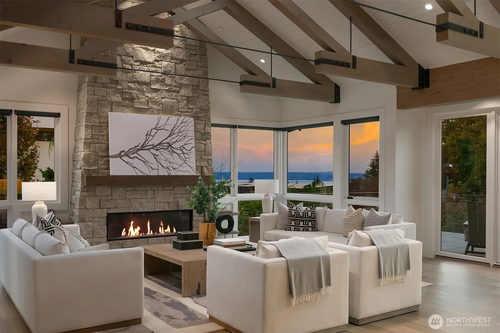 Perched near the peak of Clyde Hill, this fully gated estate by Adam Leland Homes was custom-designed to maximize the protected southwest views towards Lake Washington. An entertainer’s dream with circular driveway, open concept living, expansive covered outdoor space, gourmet kitchen, wet bar, and wine cellar. Luxury amenities include two primary suites, 3 fireplaces, cedar sauna, steam shower, elevator, 4-car garage, 3 powder rooms, and an infinity edge spa. The layout features a theater/media room, flex space, rec room, office/den, and dramatic architectural details with exposed steel and wood beams, and a stunning floating staircase. 360-degree security cameras, state-of-the-art home automation, and access to award-winning schools.