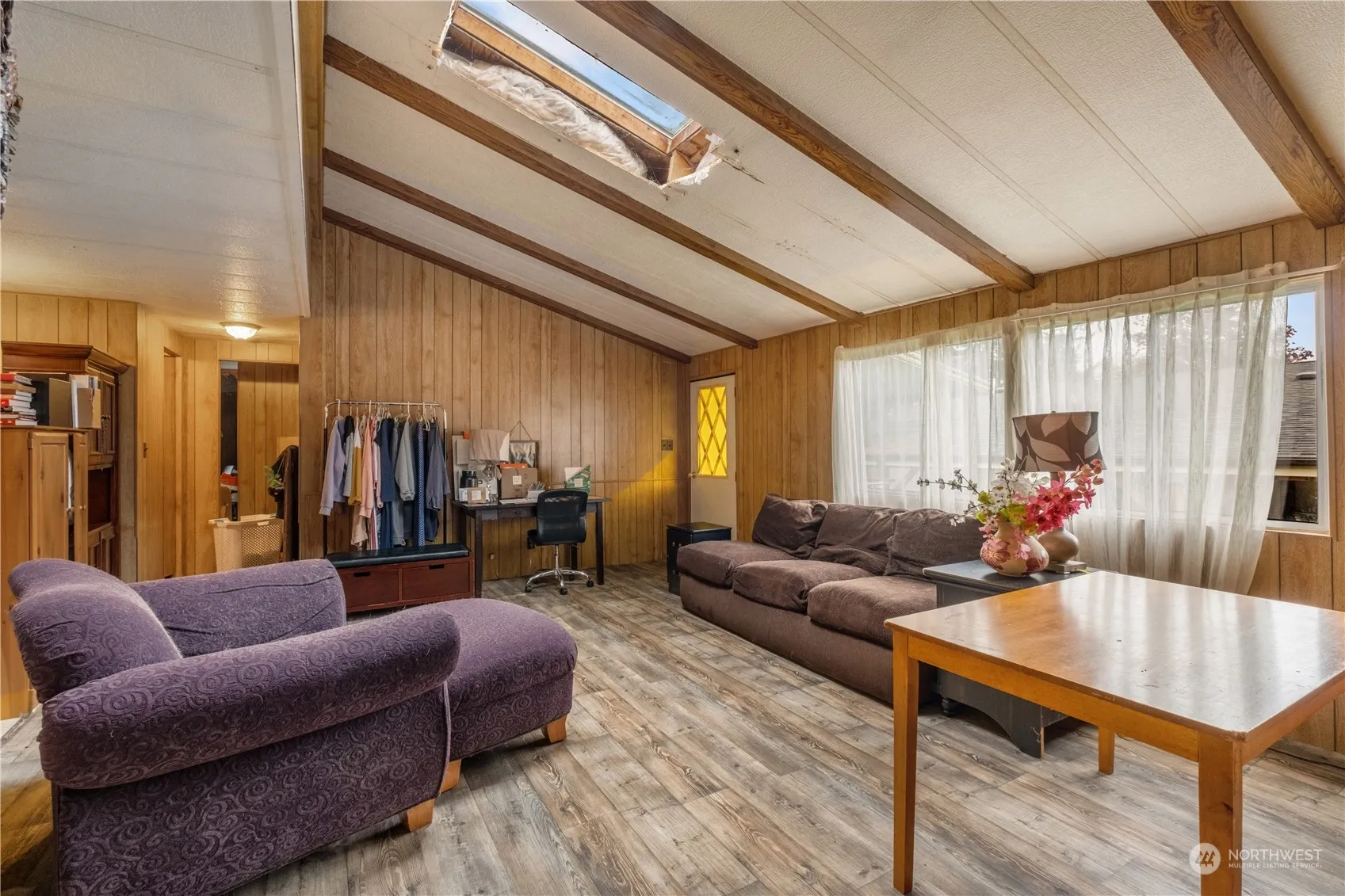 The lowest cost of living in all of Duvall, bring your toolbelt to this spacious manufactured home in the Duvall highlands in the middle of beautiful Duvall. This solid 1977 Manufactured Home has had a few homeowner renovation projects interrupted by the need for a quick sale and relocation out of Duvall. Home owner has begun renovations on two spare rooms, removing flooring and some interior panelling, as well as begun extensive renovation of the primary bath. Finally, the homeowner made some errors installing a skylight that will need a professional touch to repair. New install chimney for future wood stove. Do not pass up this diamond in the rough that is the lowest price point in Duvall Highlands and lowest price point in all of Duvall.