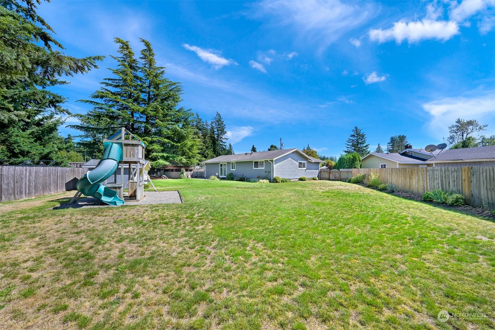 Enjoy one level living in this prime 1/3 acre mid county property providing easy access to Bellingham, Lynden and Ferndale. This 3 bed, 1.5 bath home lives larger than expected with quality hardwood floors, stainless steel appliances, quartz countertops and a floorplan that flows intelligently to all bedrooms and a great room. Outback is a spacious fully fenced yard with a prebuilt play structure, 12’x25′ concrete patio, chicken coop and storage shed/guesthouse. Parking made easy with an attached garage, multiple parking spaces and a large gravel parking area fit for boat or RV. The perfect opportunity to own a great home on a large lot in the one of the best county locations!