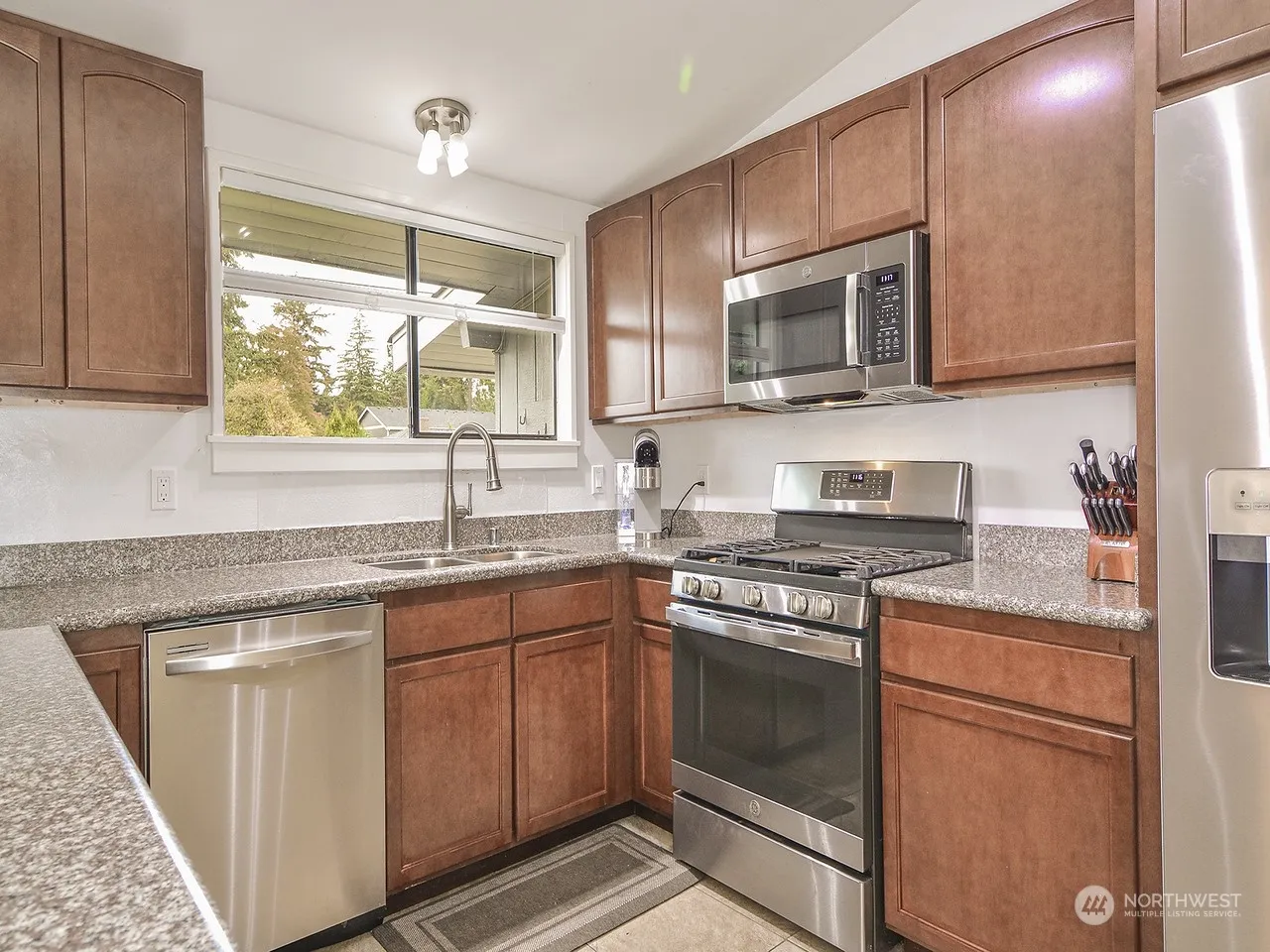 One level living at its finest. Nice home situated on a quiet street and large level lot, this 1,880 sq ft renovated rambler is turn-key and offers space for everyone. The rec room w half bath could be used as a non-conforming primary or 4th bedroom. Roomy kitchen has newer stainless appliances, granite counters and tons of cabinet space. Such a luxury to have a formal living room w fireplace, hardwood flrs & vaulted ceiling, a family rm w fireplace w French drs AND a rec room perfect for hobbies, shop, office, bedroom or TV space. Gas heat, gas oven and newer H2O tank. Conveniently located near Normandy Park shopping centers and Burien’s Five Corners with PCC & Trader Joe’s. Close to airport without airport noise and easy freeway access.