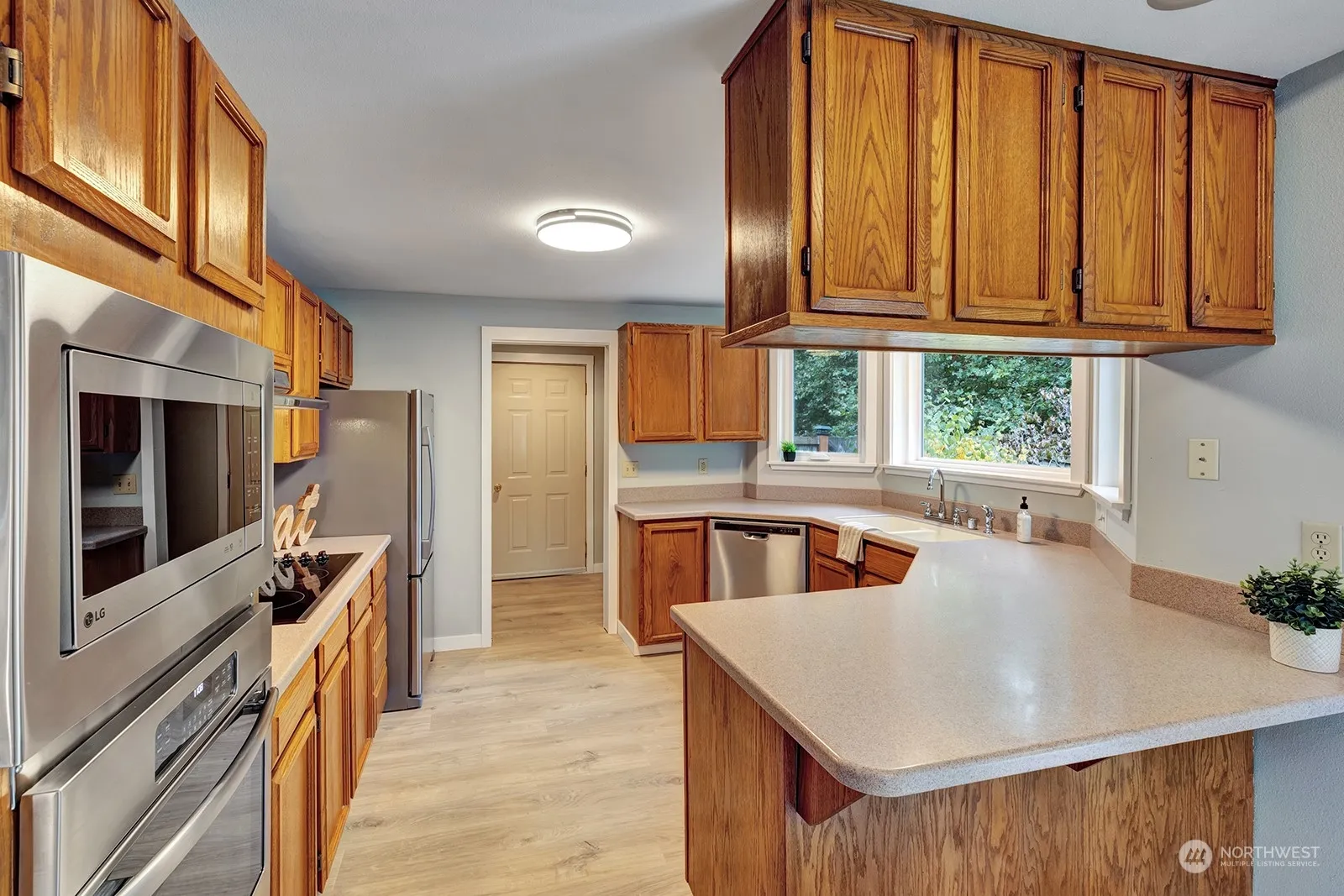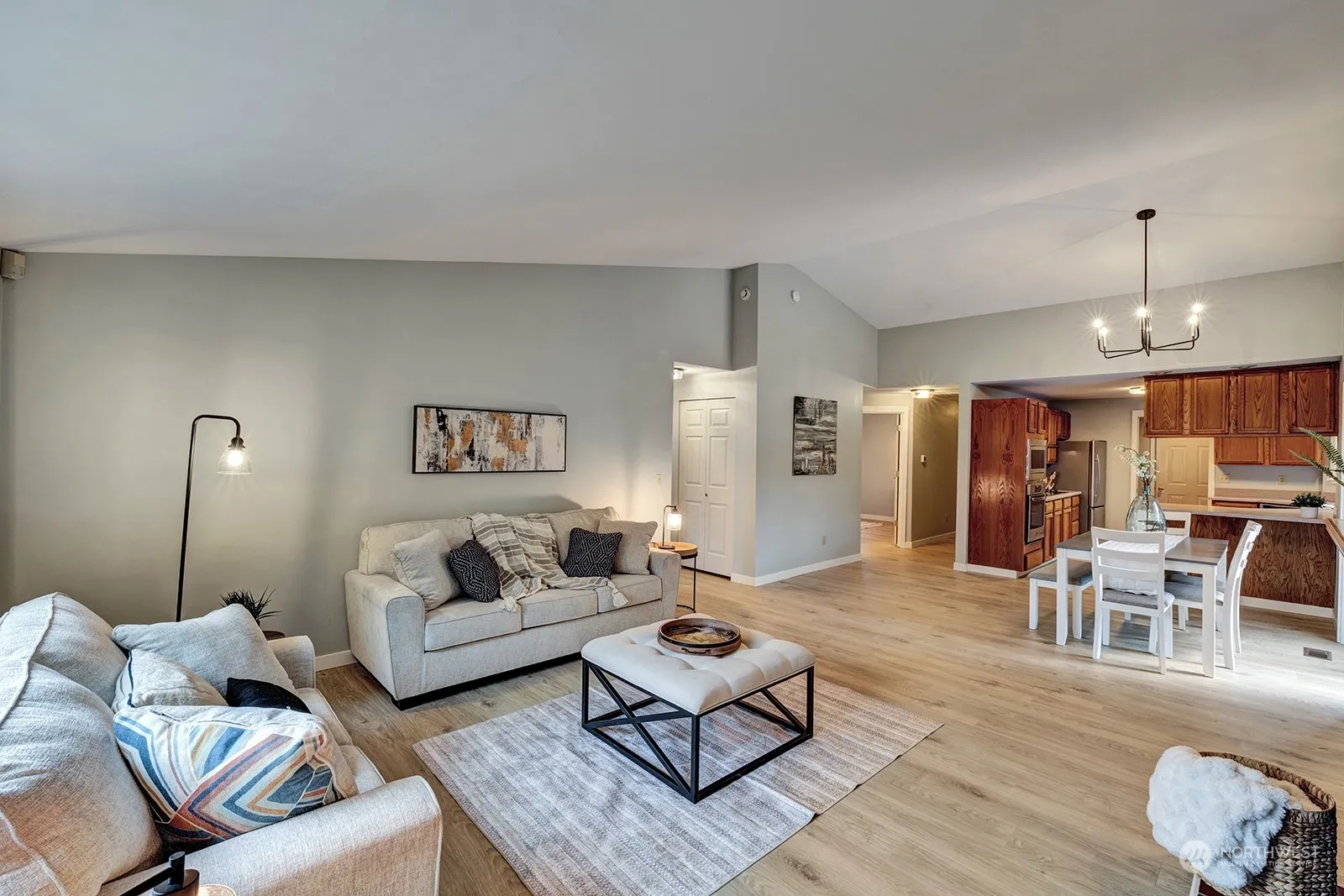 You’ll be happy to be home in this single-level, neat-as-a-pin, end unit in the private gated community of Williamswood! This ideally situated home features vaulted ceilings in the open, sun-kissed, great room which leads out to a refreshed composite deck in a backyard awash with privacy. Fresh interior paint, new laminate flooring & fixtures make it truly move-in ready. The kitchen features breakfast bar, stainless appliances & wall-oven combo. Primary suite boasts spacious walk-in closets. Accessibility features are thoughtfully integrated throughout. 2 car garage, attic storage, community RV parking & close proximity to generous visitor parking. Ideally located near parks, schools, shopping, waterfront dining & more!