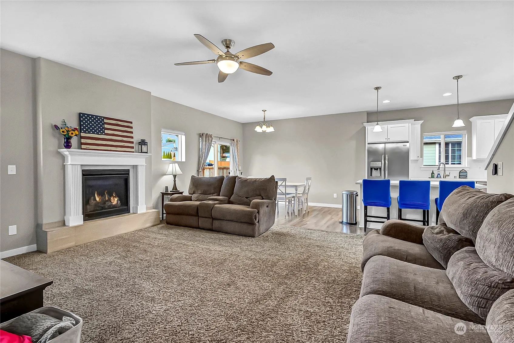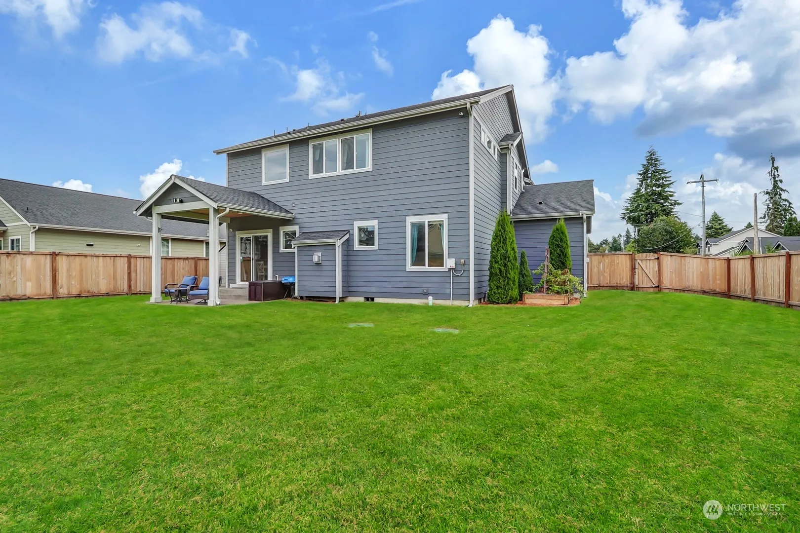 Welcome to the Rainier Ridge neighborhood! This beautiful home features an open-concept living room, dining area, and spacious kitchen with granite countertops, stainless steel appliances, and a large pantry. With 4 bedrooms (3-bedroom septic) plus a versatile flex room with a closet, it can easily serve as a 5th bedroom. The primary suite boasts a 5-piece bath and walk-in closet. Step outside to enjoy a lovely covered patio and a fully fenced backyard with a playground, all on nearly 1/3 acre. The home also includes a 3-car garage, offering plenty of space for storage and parking. Quiet, spacious, and perfect for play!