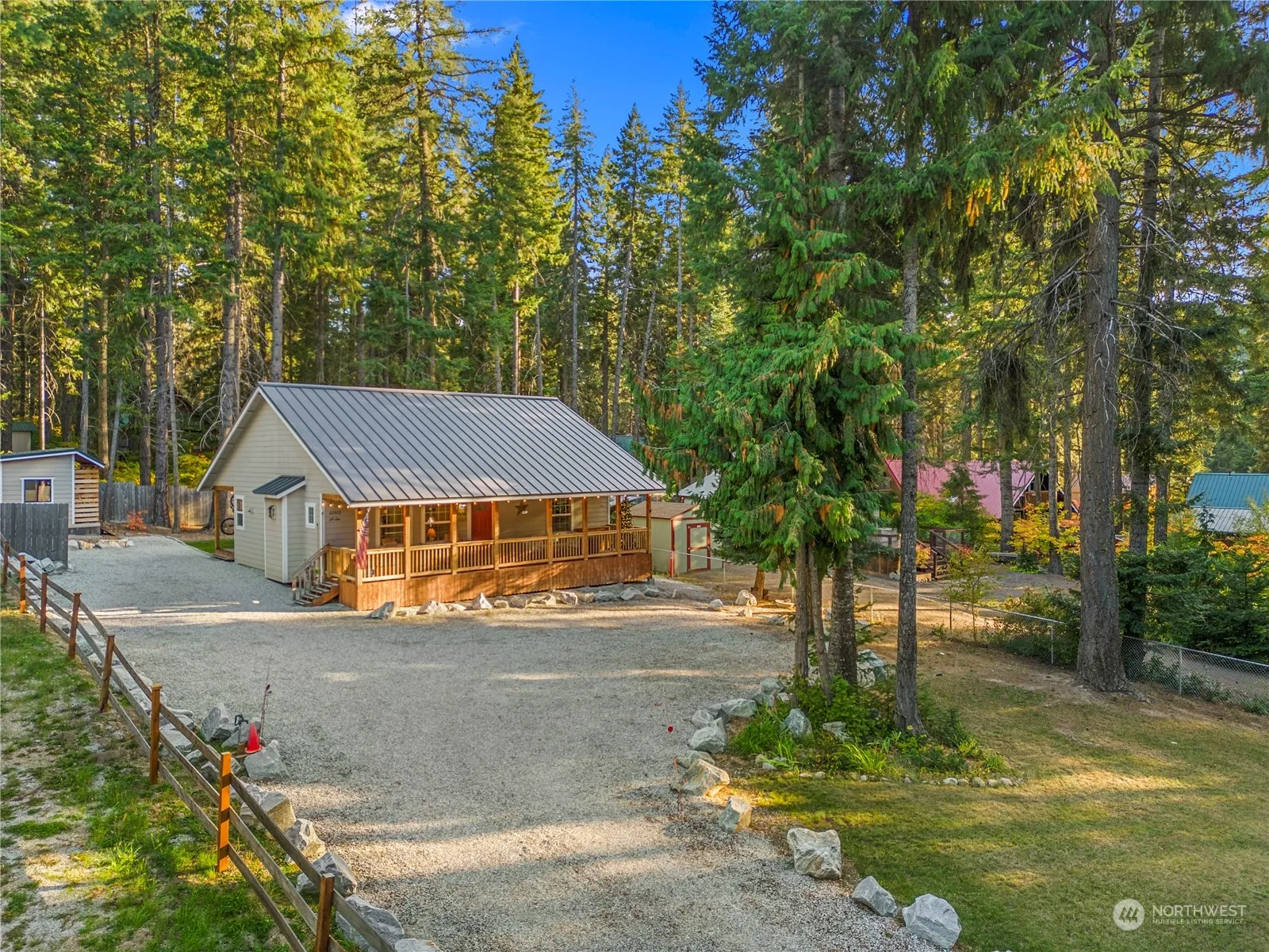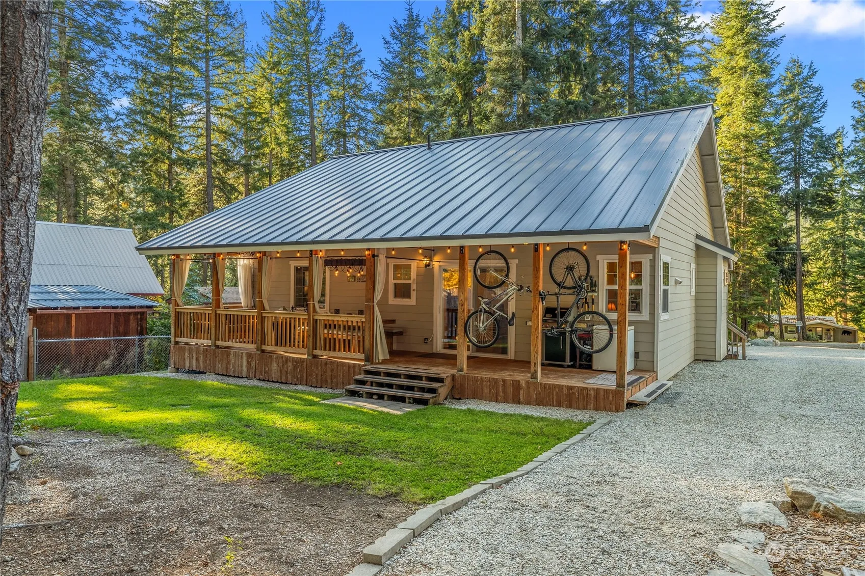Charming 2 bd, 1.5 ba cottage in the desirable Ponderosa Estates! This beautiful home features an open concept with vaulted ceilings, a cozy gas fireplace, and high-end finishes throughout. Enjoy outdoor living with two covered porches, perfect for entertaining or dining. The private, low-maintenance backyard includes a fire pit, offering a serene retreat. Ideal for a getaway or year-round living in a sought-after community, this property combines modern comforts with rustic charm in a peaceful setting. The community offers Wenatchee Riverfront access with a beach, swimming pool, sports courts, playground, and hiking trails. 20 minutes from Downtown Leavenworth, and close proximity to Stevens Pass Ski Resort, Lake Wenatchee, and Fish Lake