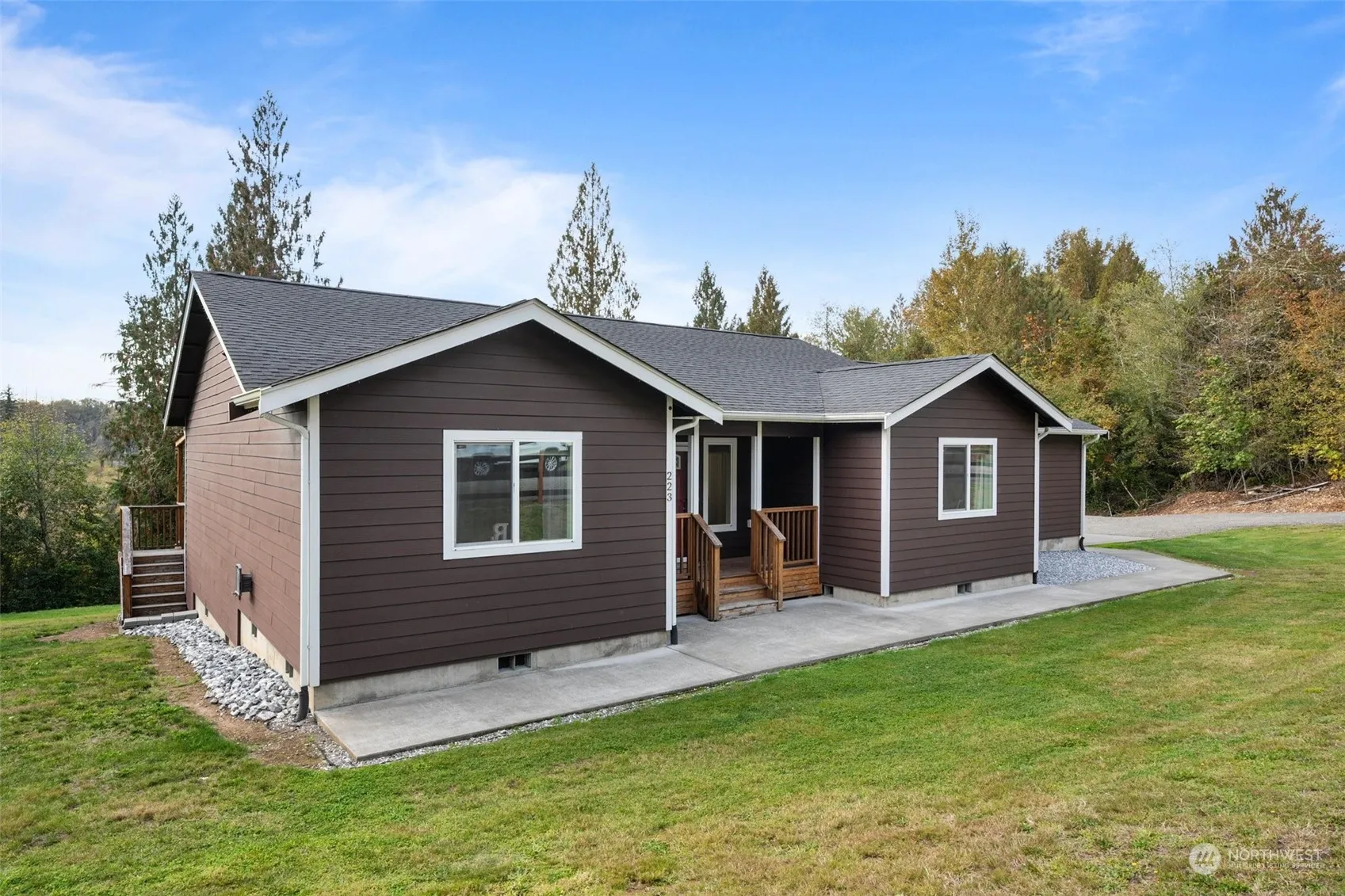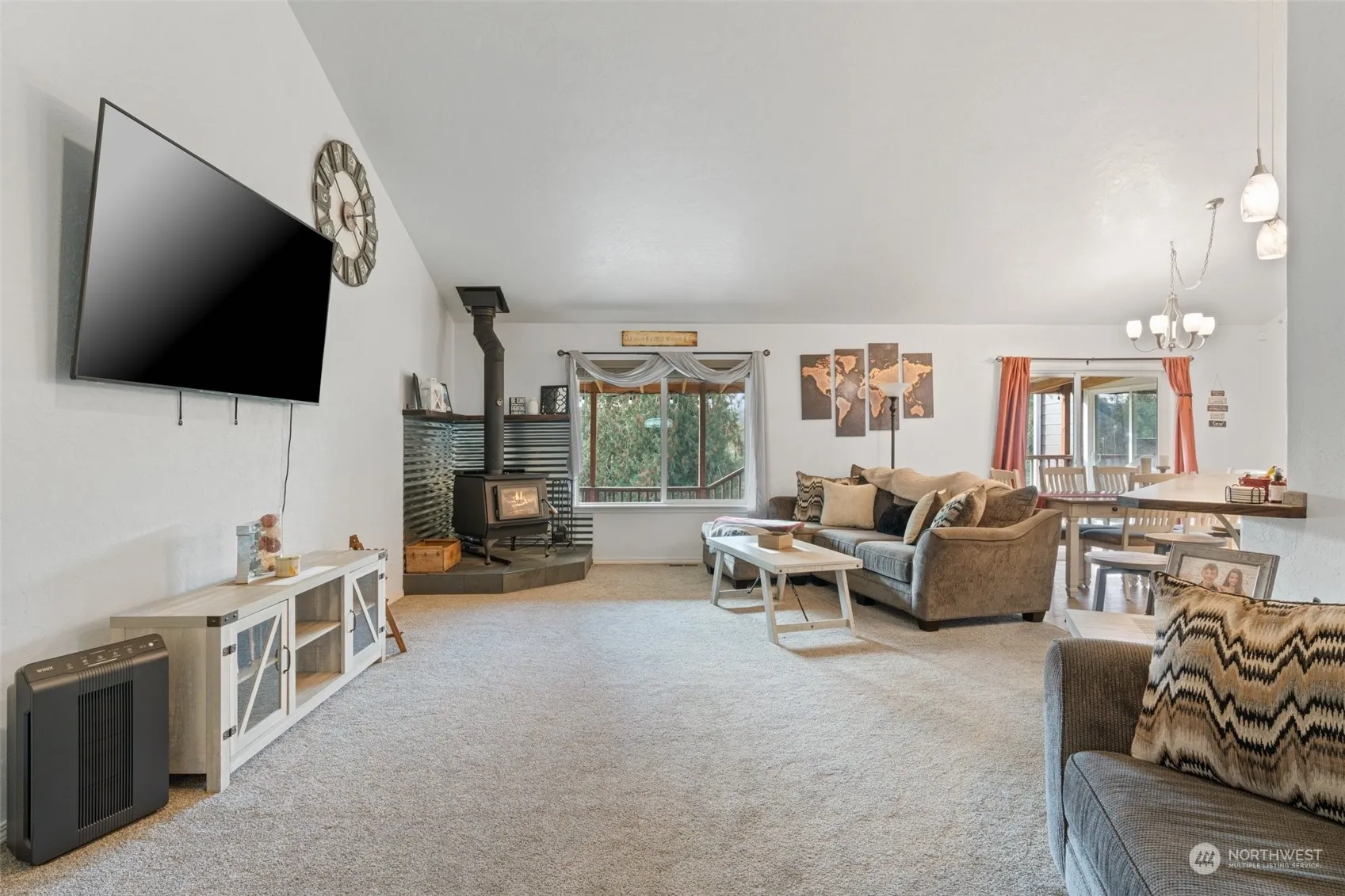 Discover your perfect retreat in this custom, one level home nestled on 8+ acres of serene lakefront property! Enjoy a spacious living room with vaulted ceilings and a cozy wood stove, plus a dining area with access to a covered deck, perfect for entertaining. The home features 3 bedrooms, 1.75 baths, and an office/den. The primary bedroom with access to the deck, and the bath has an oversized tiled shower. Additional highlights include a gated entry, 2-car garage, and an RV parking. With close proximity to endless recreational activities—from rivers and lakes to hiking trails—this home is a nature lover’s dream. Centrally located between Seattle and Portland, it’s the perfect blend of seclusion and convenience. Your lakeside oasis awaits!