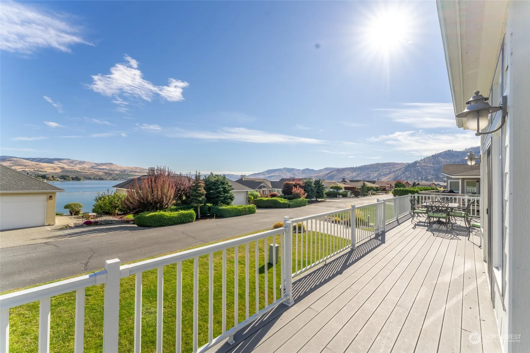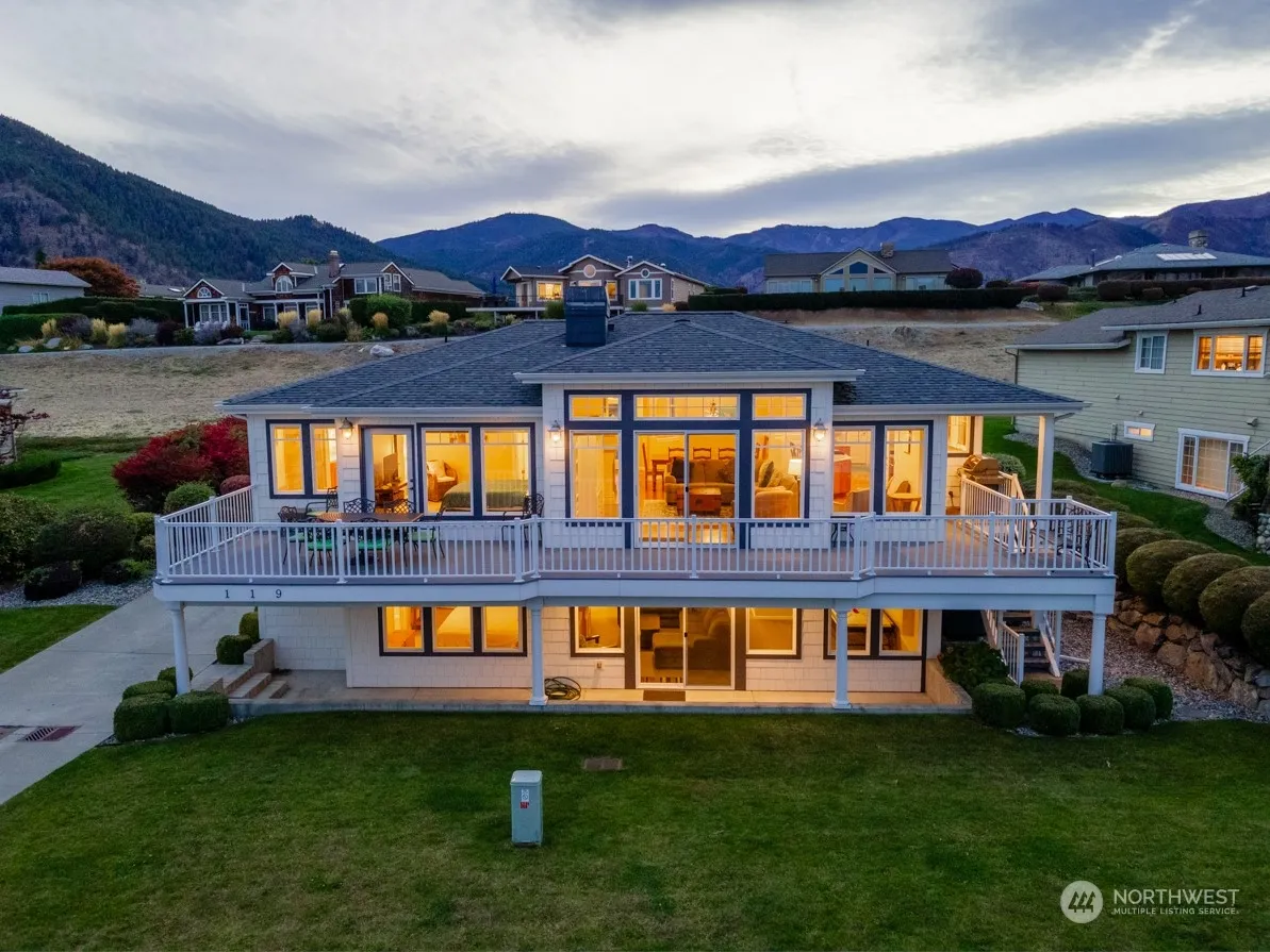 Experience luxury living in this spacious 5 bed 4 bath community waterfront home w/Primary Suite & laundry room on each level. 2-Owner Home immaculately maintained shows pride of ownership. Includes all furnishings TURN KEY. Home offers open floor plan concept, plenty of windows to enjoy sunrises, natural lighting throughout the day, lake/mountain views, wrap-around deck, covered patio, 690 sq ft garage. $2709/quarter HOA fees cover water, garbage, road maintenance & all resort amenities (sandy beaches, boat moorage & more). Less than 1 block to 2 waterfront parks & outdoor pool. Recent upgrades: 2 water heaters, kitchen appliances, TV’s, washer/dryer, exterior paint. Owner allowed 2 pets. $63k rental bookings for 2025 w/$75k+ potential.