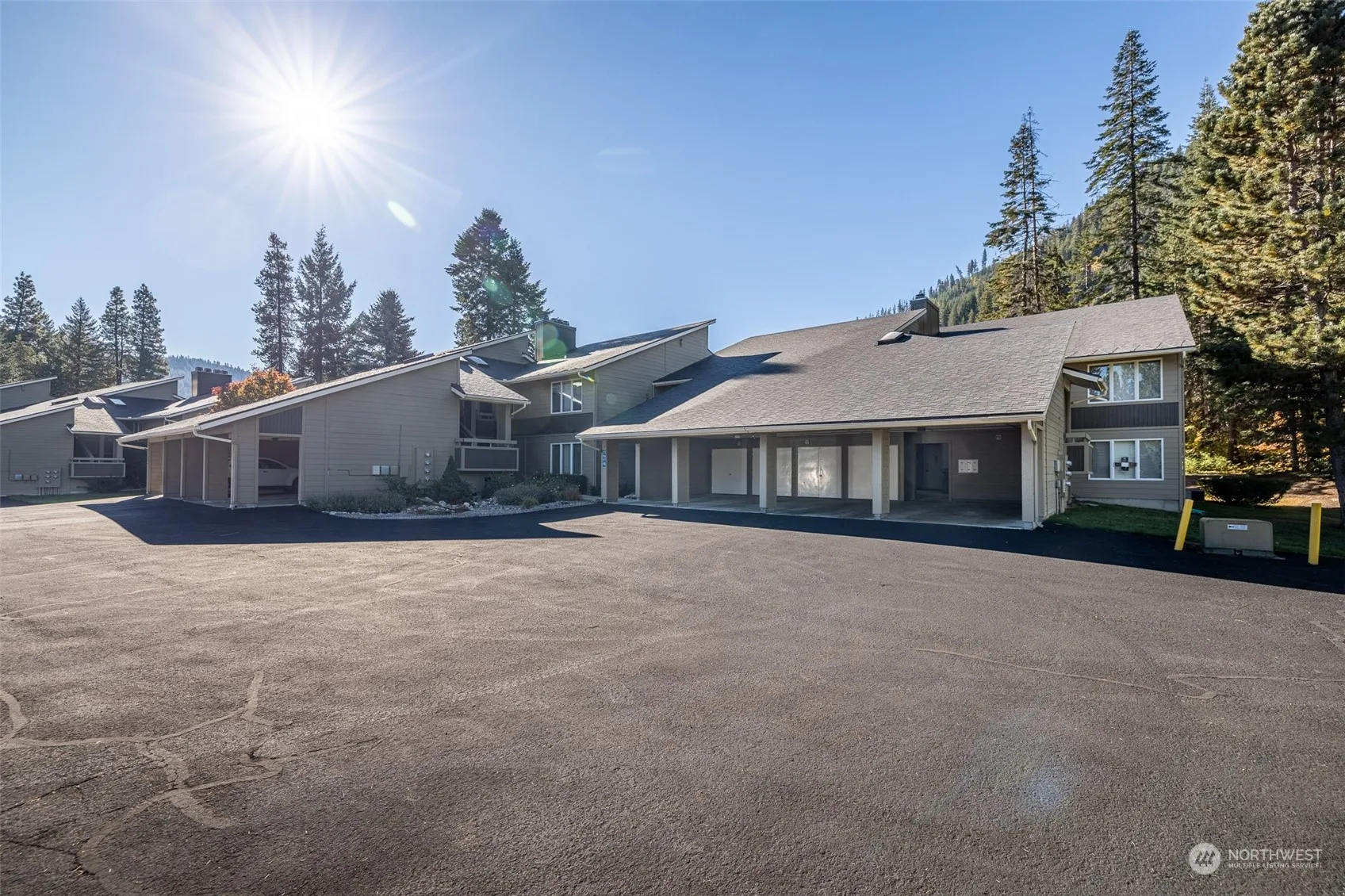 Upper-floor condo in the Kahler Glen community with beautiful views, sunny south-facing exposure, and uniquely positioned on the golf course for exceptional privacy. Two bedrooms, two baths, new LVP-floors, updated kitchen lighting, and includes most furniture for a turn-key occupancy. Great winter access with a short, covered sidewalk directly from your carport parking stall. Lake Wenatchee State Park, hiking trails, and groomed cross-country ski trails are all close by. Looking for a Short-Term Rental investment? Kahler condos are now eligible to apply for STR permits!