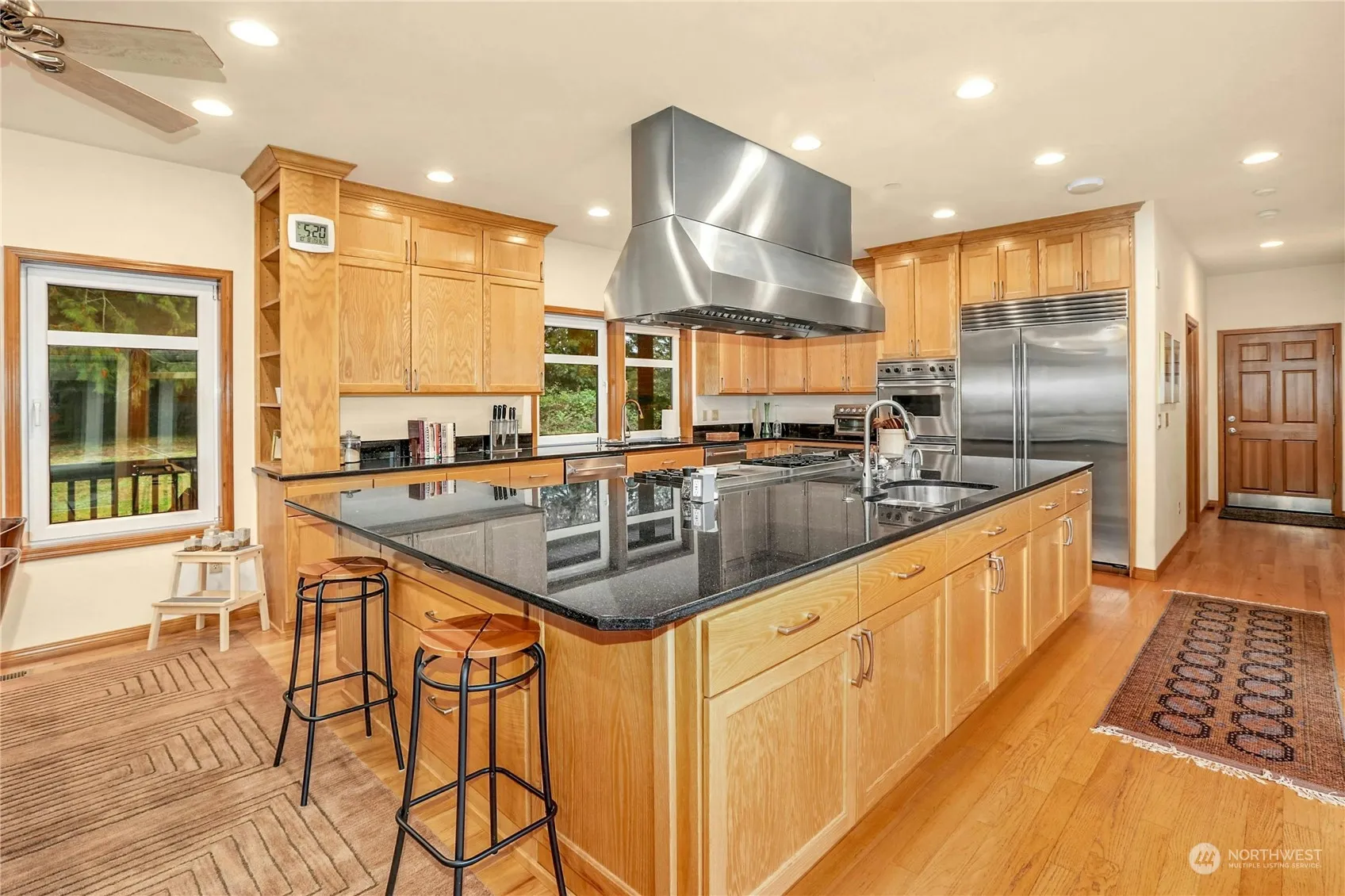 Custom built one story home on a private 5 acres. There are 3 ensuite bedrooms including a luxe primary suite which has a private den, large steam shower, deep soaking tub, and walk in closet. The kitchen is truly an epicurean delight: 60” Viking cooktop, 3 wall ovens, a new 48″ Sub Zero refer, and a 11×13’ pantry. Loaded with upgrades and features you won’t find anywhere else: beautiful solid oak flooring; custom built cabinetry; tech cabling (high speed Starlink internet); California Closets throughout. Quality Eruoline windows/doors with exterior roll shutters and an automatic generator for when the power goes out. The central patio/courtyard accessed from both sides of the house – perfect for outdoor entertaining. A one of a kind home.