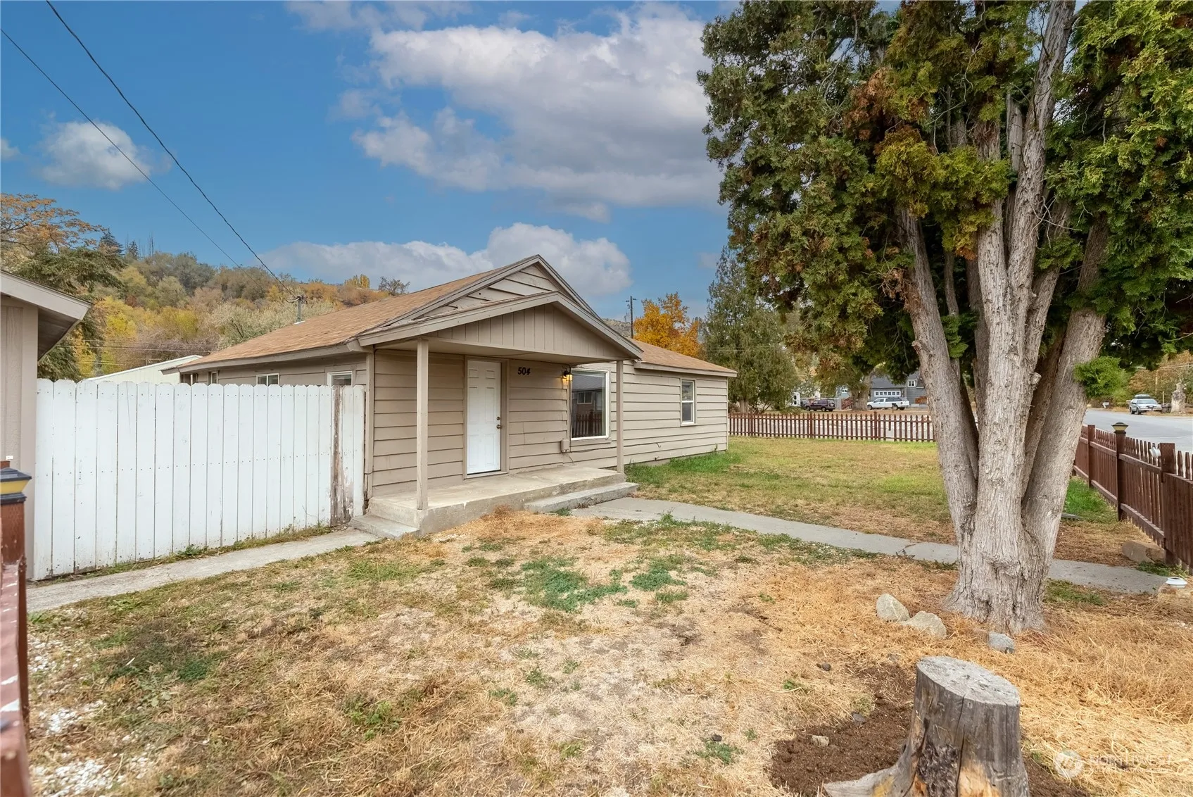 OMAK: Charming, well-kept 3 bedroom /1 bath cottage, situated on a spacious, fully-fenced corner lot. Centrally located near downtown Omak, close to schools, parks, shopping, dining, and more. City water and sewer. 2-car detached garage/shop, plus additional storage shed. Ample off-street parking. Interior upgrades include newer laminate flooring, carpet, shower and toilet. All appliances stay. Double-pane vinyl windows and wall heaters. Small, unfinished basement could be used as root cellar or for additional storage. Covered back porch for convenience during all seasons.