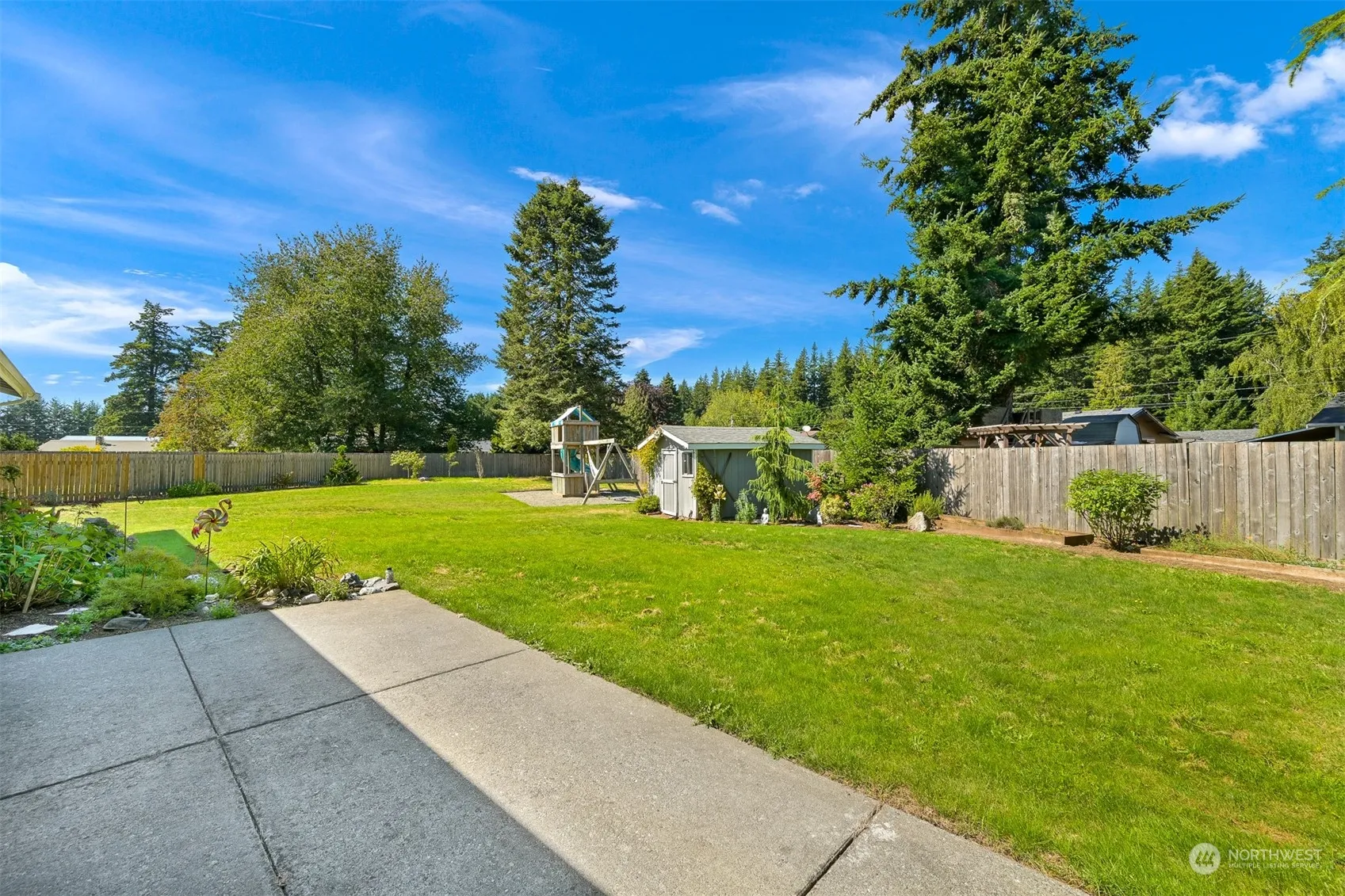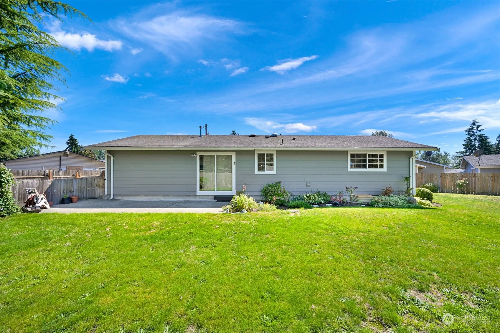 Enjoy one level living in this prime 1/3 acre mid county property providing easy access to Bellingham, Lynden and Ferndale. This 3 bed, 1.5 bath home lives larger than expected with quality hardwood floors, stainless steel appliances, quartz countertops and a floorplan that flows intelligently to all bedrooms and a great room. Outback is a spacious fully fenced yard with a prebuilt play structure, 12’x25′ concrete patio, chicken coop and storage shed/guesthouse. Parking made easy with an attached garage, multiple parking spaces and a large gravel parking area fit for boat or RV. The perfect opportunity to own a great home on a large lot in the one of the best county locations!