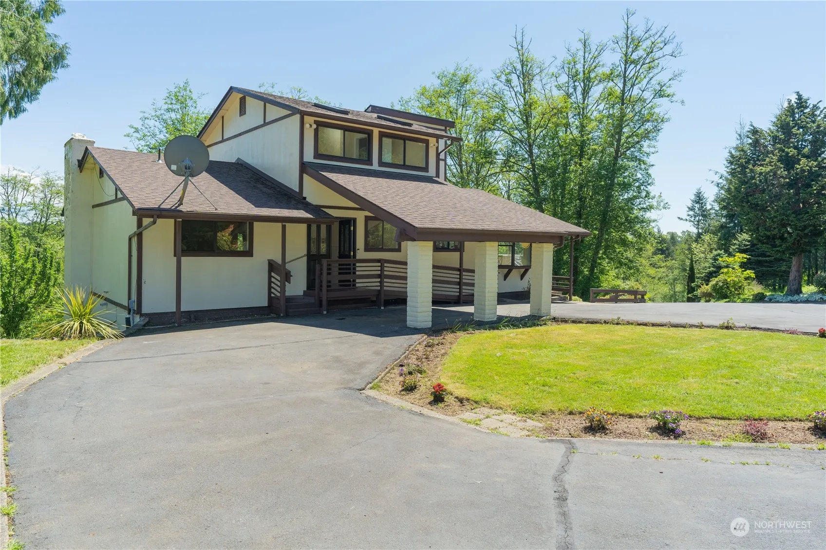 This house was fully remodeled 3 yrs ago & sits on 6 park-like acres! Paved drive leads to this amazing home up on a hill. Newer interior paint, carpet, luxury laminate, light fixtures & well pump. The upper floor is a hugh primary ste. Main floor has Lg open skylighted kitchen w/eating area & SS appliances, bright dining rm, hugh living area & family rm w/fireplace. Day basement boasts a lg game rm w/pool table, wet bar & Den/Office. Carport w/ramp, detached 2 car garage w/storage & studio apt w/ 3/4 bath. Freshly painted renovated 3 level decking system w/BBQ area. Property also has an above ground pool w/deck, barn w/3 stalls & Mature landscaping w/fruit trees. Great tranquil location to fit all your needs. You’ll Love It!