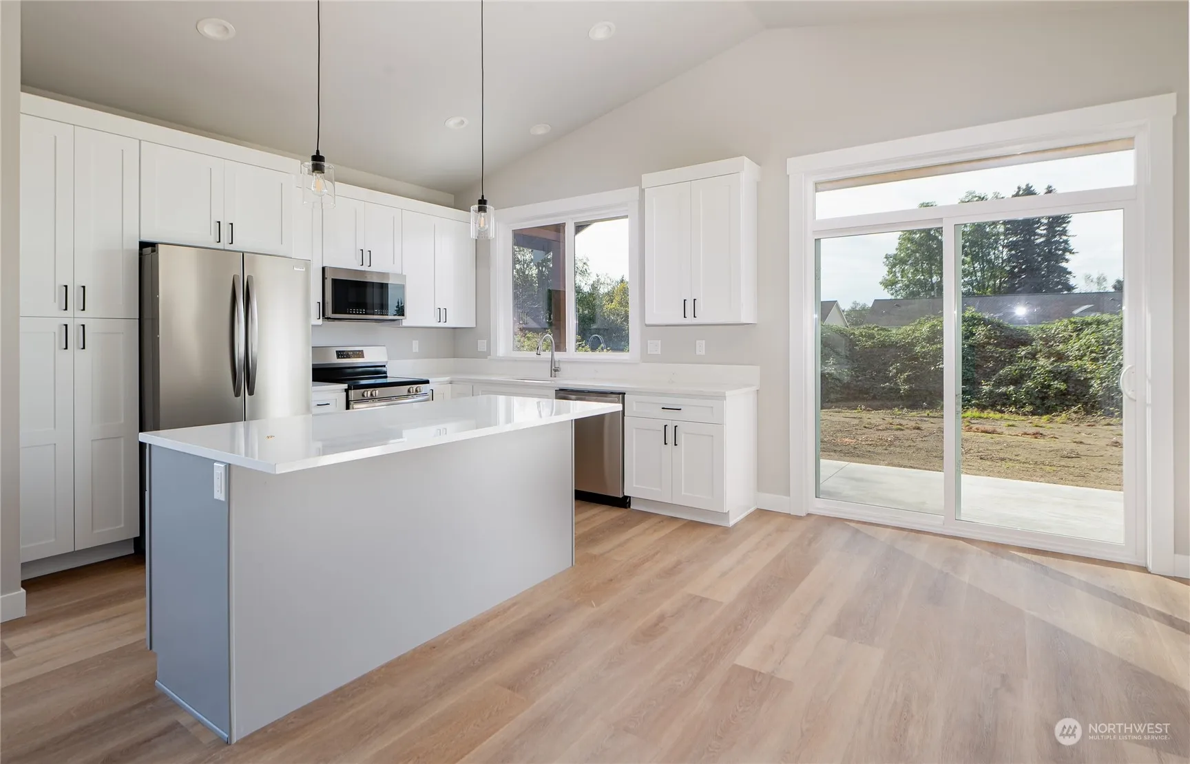 Welcome to Whispering Meadows! This immaculate new construction home is located in one of the newest developments in Nooksack. Featuring 3 beds & 1.75 baths, this home has everything you need. Upon entering, you’ll be greeted by an open & spacious floor plan with vaulted ceilings throughout the kitchen, dining, & living room. The kitchen boasts soft close cabinets, a large island with seating, quartz countertops, & SS appliances. Enjoy the expansive backyard with an awesome covered patio. The primary bedroom includes vaulted ceilings, door to patio, a walk-in shower, double vanity, & a generously sized walk-in closet with custom shelving. Each room is equipped with ductless mini splits to keep you cool in the summer & warm in the winter.
