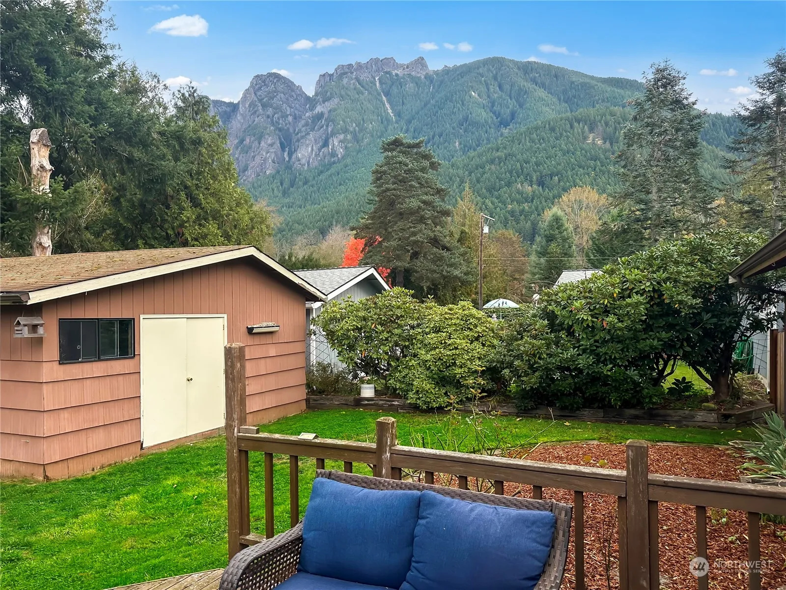 Welcome to this charming RAMBLER, nestled at the base of Mt. Si, where you can take in stunning views from your entertainment sized deck! Inside the inviting warmth of real hardwood floors, skylights & a cozy wood burning stove (chimney cleaned a year ago, so it’s ready for winter). The kitchen shines w/a new stove, microwave, dishwasher & a garden window, complemented by stylish SS pulls. Cozy dining area just off the kitchen & fresh interior paint adds to the home’s appeal. Outside, you’ll find a large storage shed, wood shed, RV parking & a deep 1car attached garage. The roof was installed in ’07 & the partially fenced yard offers mature landscaping & garden space. Ideal location for convenience & tranquility just mins to town & the HWY.
