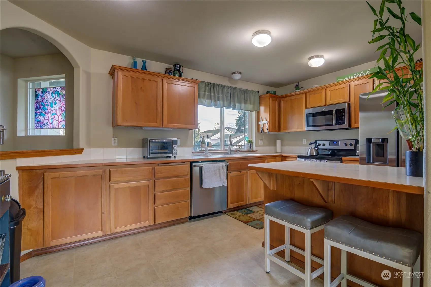 Welcome Home! Spacious beautiful home with full view of Mountain Rainier. Home features 5 bedrooms and 3 bathrooms. 3 car garage, central air conditioning. Master bedroom on the main floor includes five piece master bath with full walk in closet. Open concept kitchen full of natural light includes eating bar. Entertain with a large deck and patio, fire pit and fully fenced back yard. Home located in beautiful Hidden Lakes HOA. Community has parks and fountains.