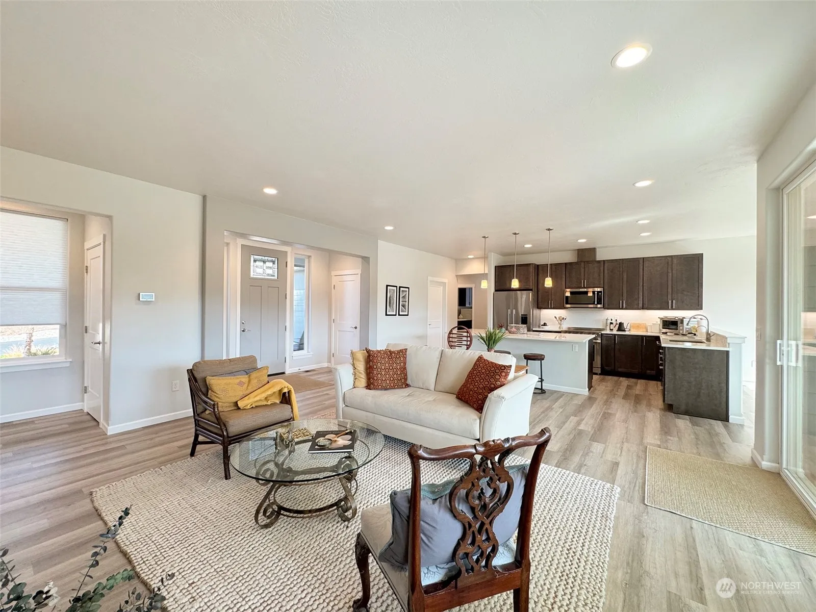 Like new 2 BR, 2 BA home with den is light & bright with sunny south facing mountain views & privacy. Built in 2020, lovingly cared for, & expertly improved. Professionally landscaped low maintenance yard with rock slabs, river rock, & native plants. Fenced grassy area for those furry friends. Large covered rear deck & outdoor living area overlooking a green belt to protect the views & privacy. Energy efficient heat pump, propane fireplace in great room, open concept kitchen w/ all stainless steel appliances, quartz countertops, huge center island & tons of storage with a walk-in butlers pantry. 9 foot ceilings throughout, & tall windows to soak in the sun. Big two car garage, large bedrooms & den, & a floor-plan with near perfect flow.
