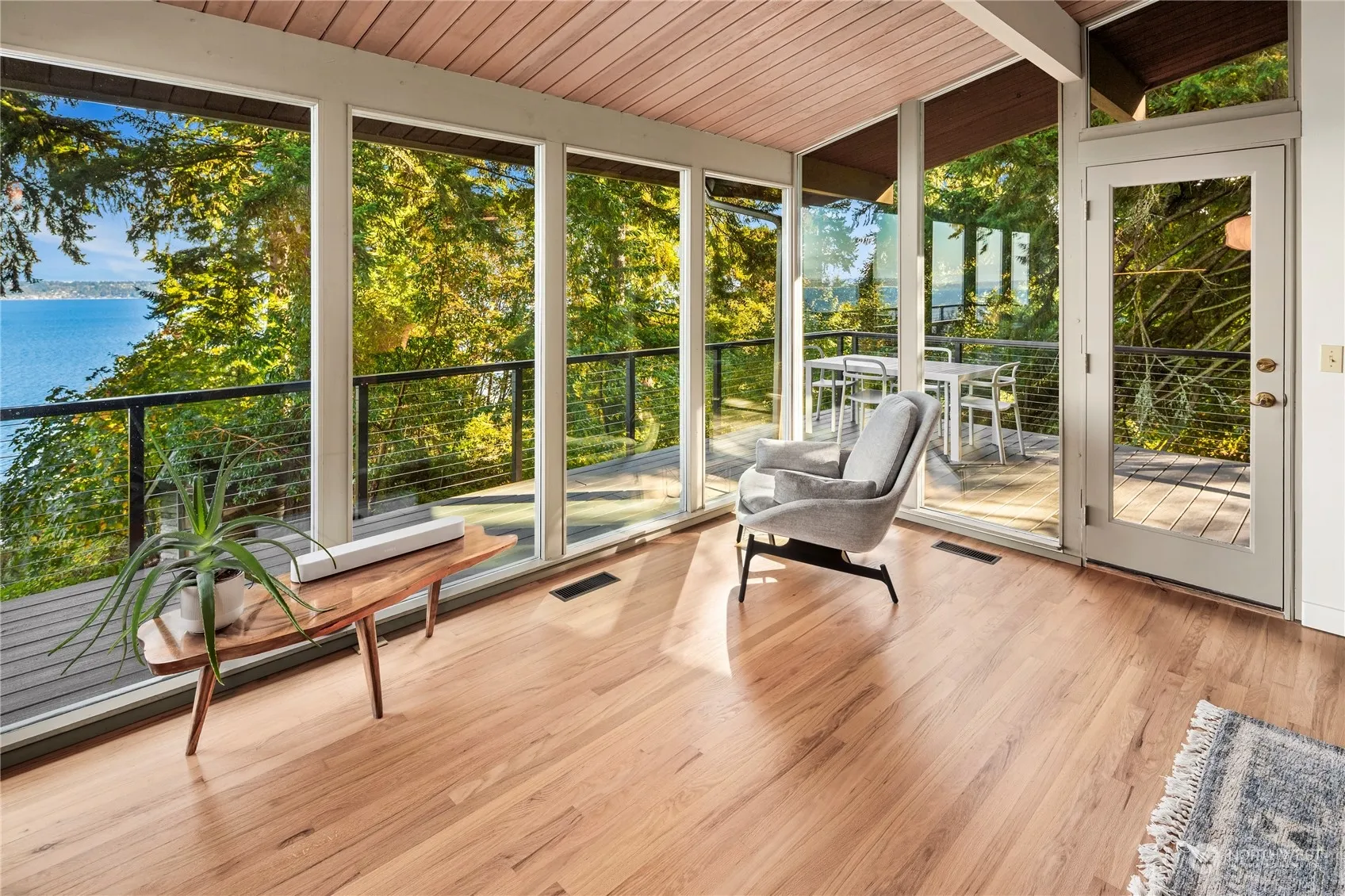 A winding road through towering evergreens ends at The Ridge—utterly private, overlooking huge views facing the Cascade Range and shipping lanes—a sleek, turnkey, one-level, Northwest contemporary sanctuary! Enveloped by native plantings and gardens, the home is 2,170 sq. ft. of high-end fixtures and finishes—hardwood and ceramic tile floors, reimagined kitchen and baths, AC, a walk-in shower primary suite, two other bedrooms, den office, great room, and a detached two-car carport with electric charging station. Decks and a hot tub are perfect places to relax in the calm and quiet, breathe the freshness and watch the orca J-Pod swim up the side of the island. Away from a world of traffic and noise, welcome home!