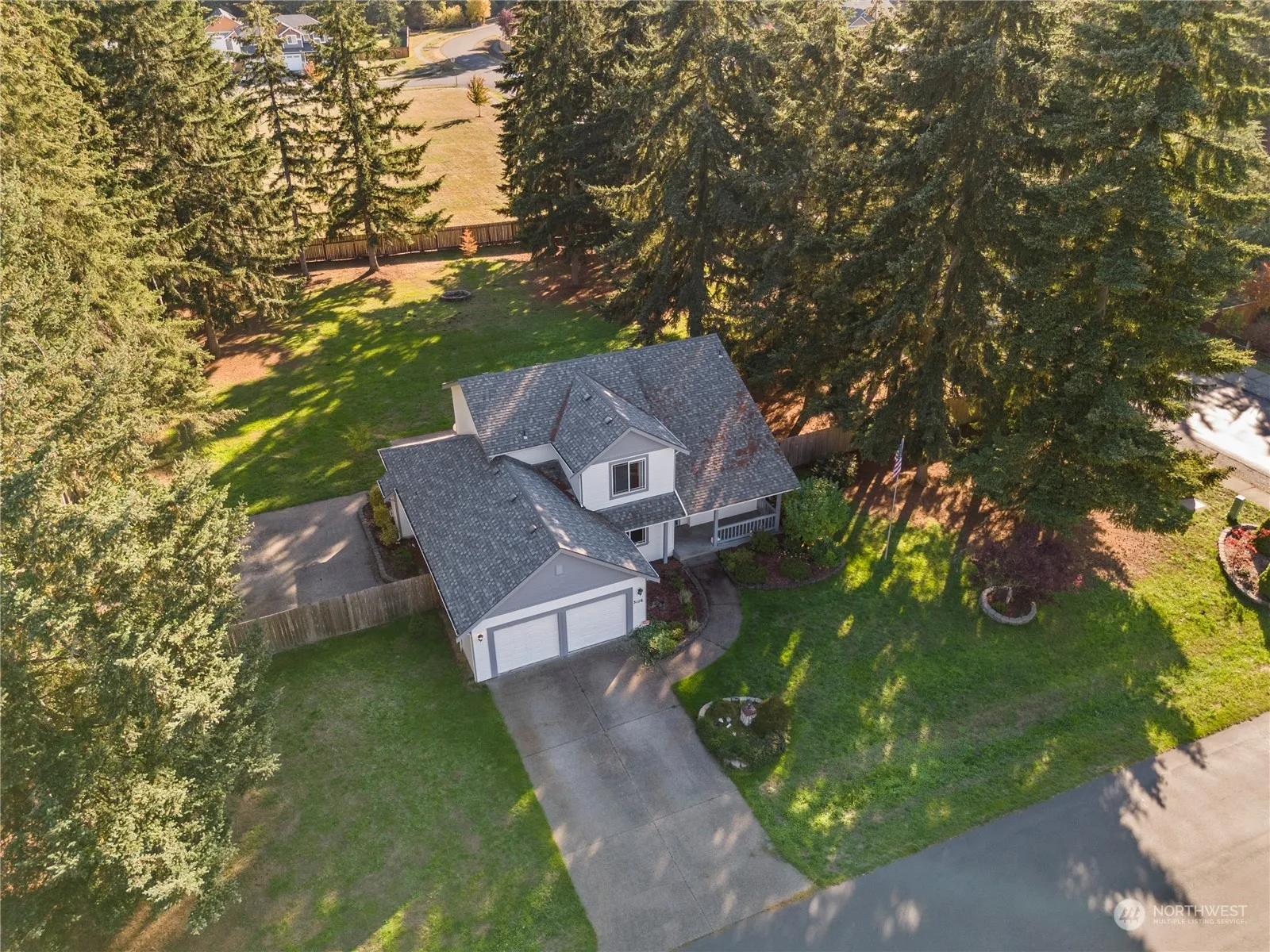Lacumas Valley Estates, a gated community offering privacy! 2 story, 3 bed & 2.5 bath home located on a spacious level acre, bordered by a park for added seclusion. It welcomes you w/ a vaulted entry & formal living/dining areas. The kitchen is equipped w/ all appliances & a BB, opening to a family room w/ gas FP. The main floor also includes an office, laundry room, & half bath. Upstairs, the primary bedroom has a walk-in closet & 5-piece bath w/ a soaking tub & shower. 2 additional beds & full bath complete the 2nd floor. Outside, enjoy the large patio, fire pit, & horseshoe pit perfect for entertaining! Fresh updates include: NEW PAINT, NEW ROOF & NEW CARPET. There is even space for an ADU or detached garage. Easy access to JBLM!