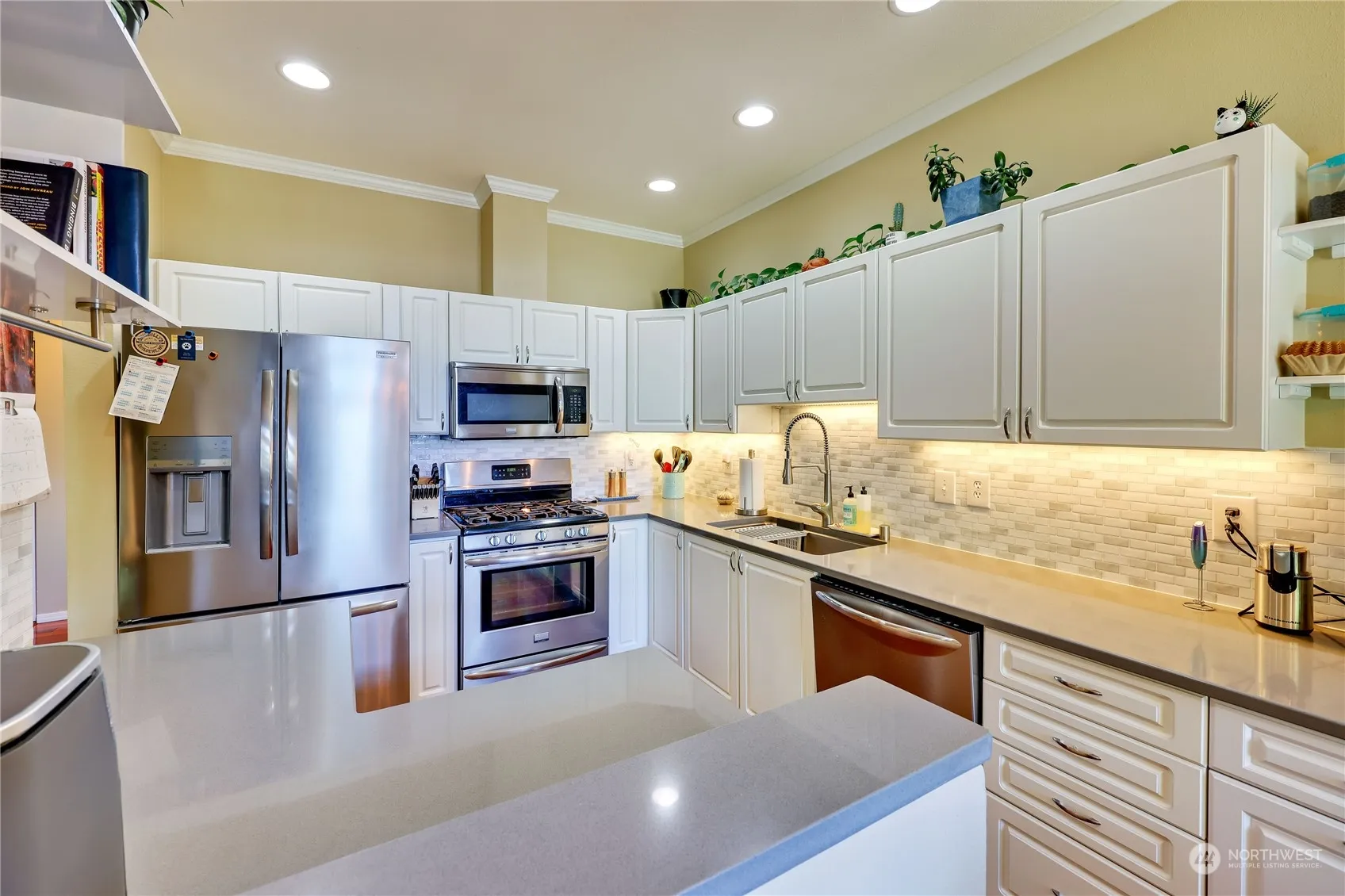 Discover an ideal townhome in the desirable Ridgetop neighborhood of Central Kitsap. Take in the incredible Olympic Mountain views! This beautifully appointed home boasts stainless steel appliances, gas fireplace, hardwood flooring, updated quartz countertops in the kitchen, and more. Enjoy ample storage w/multiple walk-in closets & 2 car attached garage w/new insulated doors. Step outside to your private back yard, view deck off dining room or unwind indoors with A/C and gas furnace for year-round comfort. Minutes from downtown Silverdale, Naval Base Kitsap, Keyport, St. Michael Medical Center, and the top-rated CK Schools. Seller to provide 1 year American Home Shield Essential Policy. Location can’t be beat! Don’t miss out!