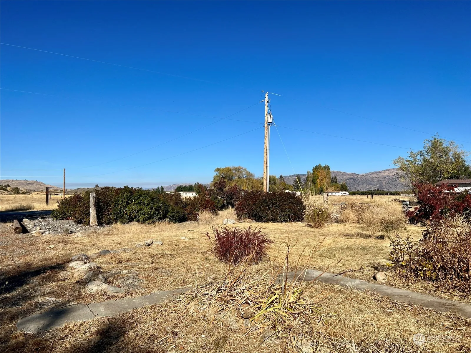 OMAK Flats – This Park-like 2+ acre parcel is ready for your dream home! This lot has a private well, septic, power and outbuildings. Mostly fenced with mature landscaping including wine grapes, raspberries, plum trees, and apricot trees. Garden space. Concrete patio and sidewalks. Gravel driveway. Minutes to Omak. L-3611/MLS2299243 $135,000