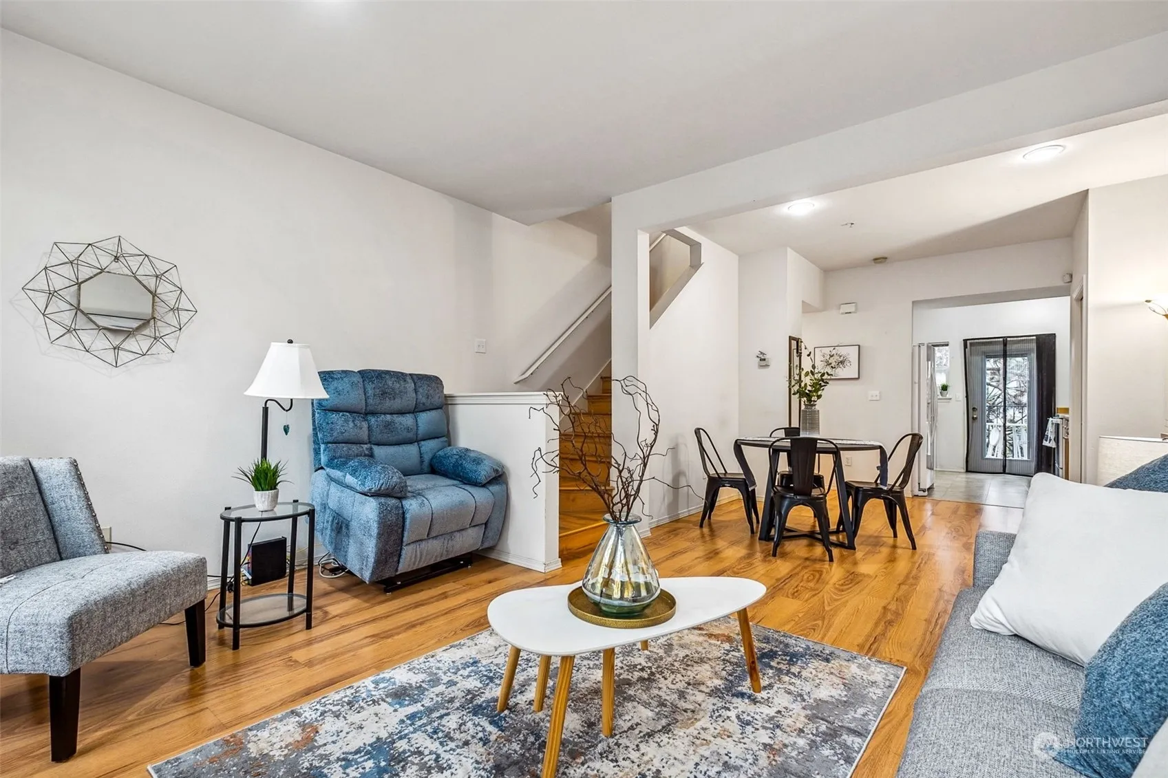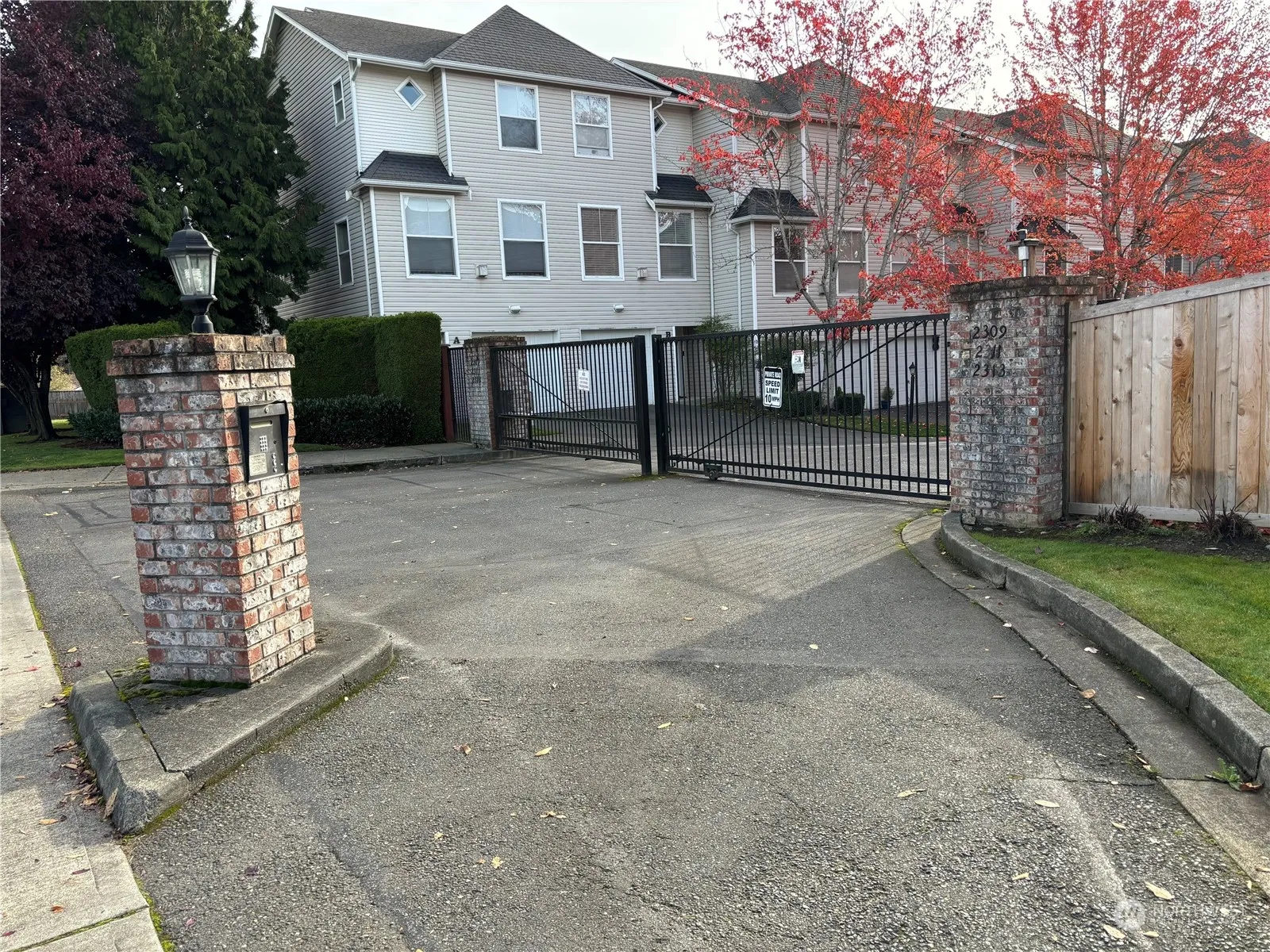 WOW NEW PRICE on move-in-ready gated townhome w/access to pristine Surprise Lake. Fife Schools. VA Approved. Low-maintenance Townhome complete w/2024 Water Heater & upgraded Furnace. Main floor impresses w/high ceilings, open plan & beautiful wide plank flooring. Kitchen has plentiful wood cabinets, counter space & newer S-b-S fridge, Glass-top Oven & updated Trex deck Balcony. Dining area, generous Living Room w/cozy gas FP, Powder Room & laundry w/newer, Hi-Cap/HE W/D pair on main floor, too. Upstairs: spacious Primary suite w/2x closets & private bath. Quiet second bedroom has lighted WIC, 3/4 Bath nearby. Extra long garage fits 2 smaller cars or save $ and use as Storage. Adapt new outlet to charge car. Amazing commuting location.