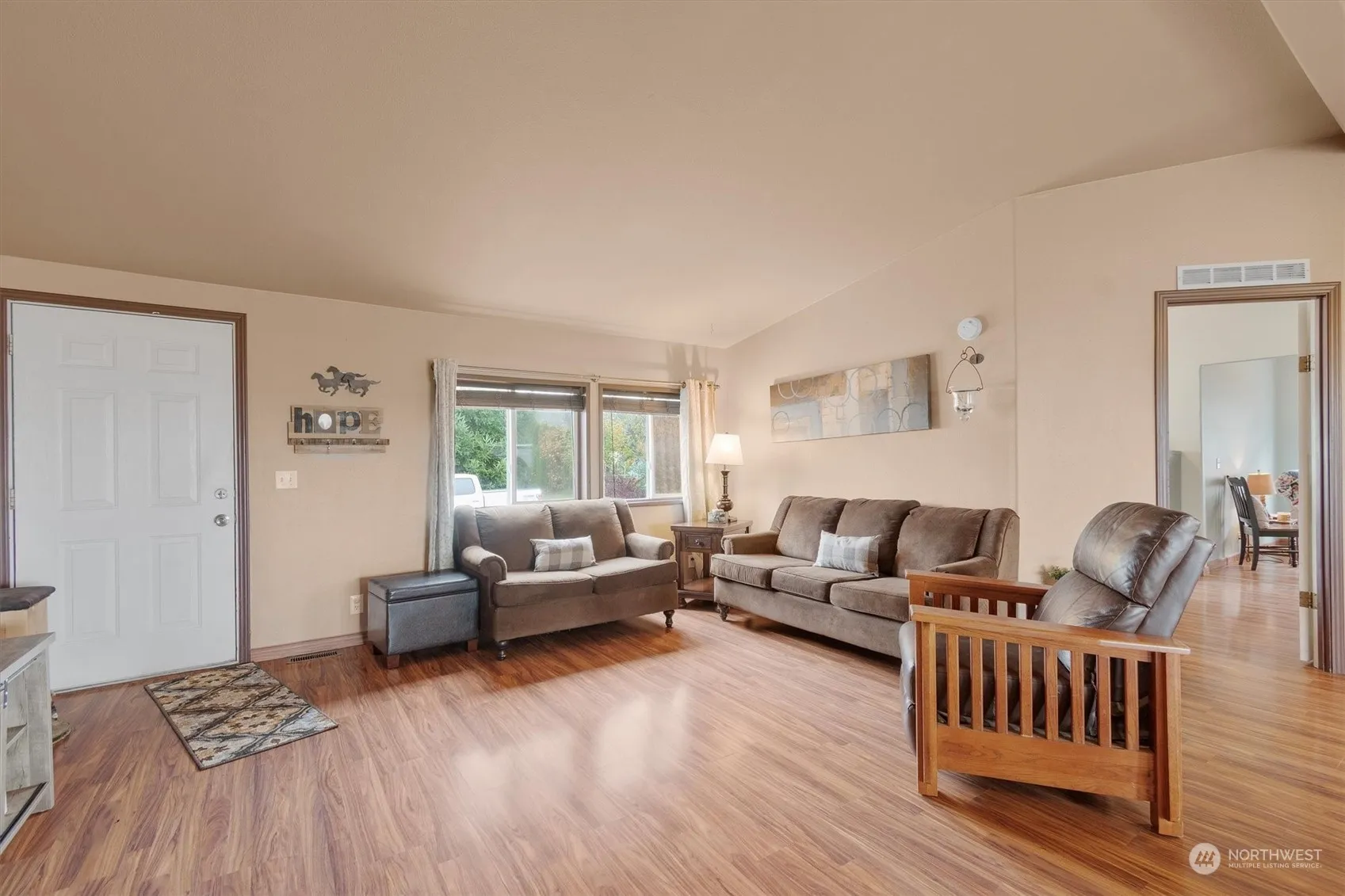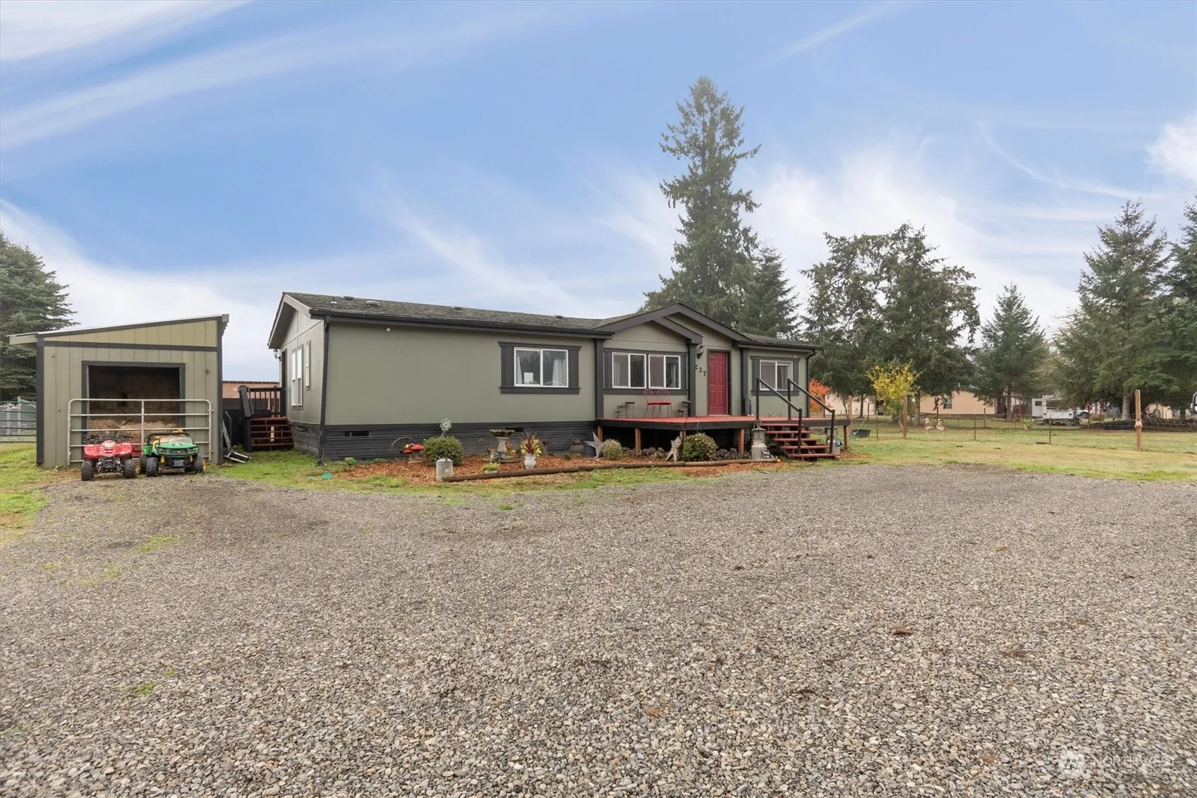 SEPTIC SYSTEM INSPECTED AND PUMPED! HOME INSPECTED BY A LICENSED AND BONDED CONTRACTOR—ALL IN EXCELLENT CONDITION! Embrace the tranquility of country living in this delightful 3-bed, 2-bath manufactured home, set on a spacious, level lot ideal for gardening, keeping animals, or enjoying outdoor activities. This 1,456 sq ft open-concept home boasts vaulted ceilings and a smart layout, with the primary bedroom conveniently located near the kitchen and utility room, plus a cozy nook that could serve as a future walk-in closet. On the opposite side, two additional bedrooms and a guest bath offer extra privacy. Start your mornings on the covered deck, soaking in the peaceful views of the surrounding acreage, complete with a charming outbuilding.
