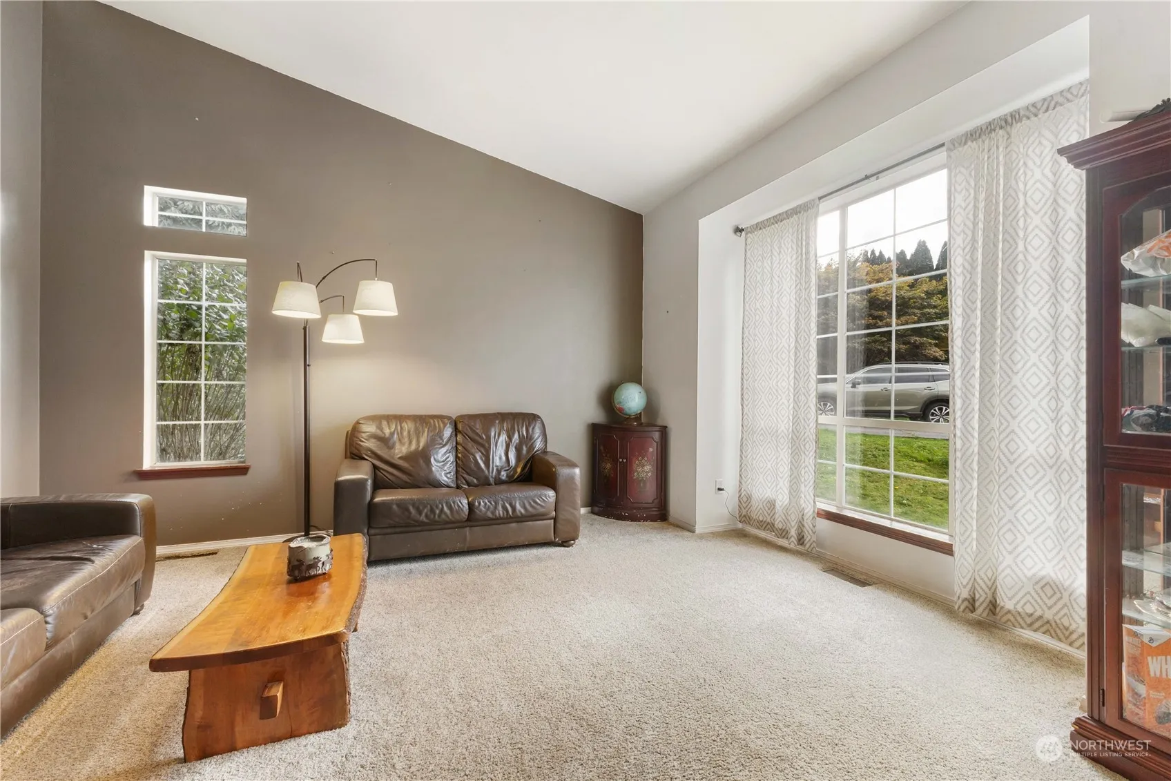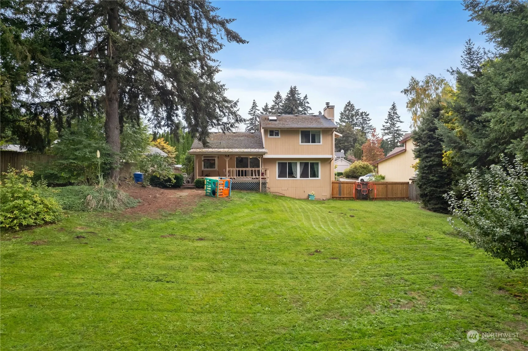You’ll love the huge back yard at this Saddlebrook neighborhood home. The treed landscape plus the county greenbelt along the back property line, provide seclusion from the two adjacent properties. A formal living room welcomes you as you enter this 3 bedroom, 2.5 bath home. The kitchen with dining area is open to a step-down, more casual living room with a wood-burning fireplace for added warmth on chilly autumn nights. One bedroom on the lower level. The primary bedroom w/bath & walk in closet, plus second bedroom suite also w/full bath are on the upper floor. Attached garage, wired for generator capability. Super convenient location, close to major shopping centers and an easy commute to Tacoma, Olympia and Seattle. No HOA.