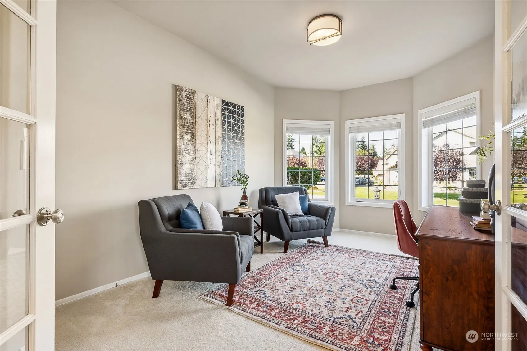 Welcome to this impressive showstopper on a gorgeous corner lot, on the wide, peaceful streets of Westhampton! Formal entry and living room w/ soaring 2 story ceilings invite you into this beautiful, light filled home. French doors open to office/den that could also be the 4th bdrm. Updated kitchen & great room combine elegance & functionality w/walk in pantry, dbl ovens, island seating, kitchen table nook, built-in cabinets around the fireplace, & slider to your large back patio and yard. Laundry room & powder room have also been thoughtfully updated. Upstairs you’ll find the generous primary suite w/gorgeous fixtures, double vanity, soaking tub, walk-in closet w/ extra storage room, & a stunning view of Mt.Rainier! A must see!