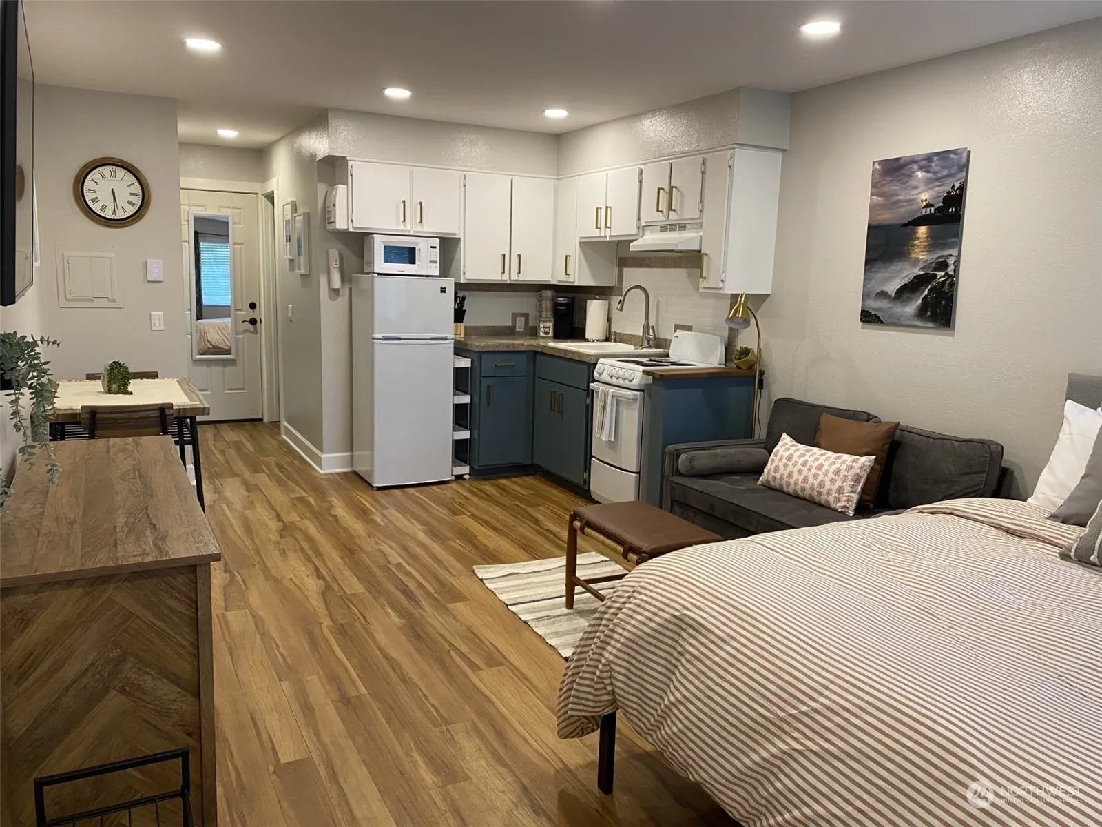 Successful vacation rental in Friday Harbor on San Juan Island. This turn-key studio has a high rental rate & produces income throughout the year. With a simple smart lock entrance you can manage this rental remotely. It’s an easy way to own an income generating property on the island & have a place to stay when you visit. The tasteful remodel makes this unit comfortable, clean & desirable. Enjoy the amenities onsite, including a gym, seasonal pool that will reopen next year & new coin-operated laundry. The Sandpiper Condos have a mix of short term & long term rentals & owner occupied units. This is one of only a few vacation rentals in this complex, let alone this close to town. Rental managed by the owners using popular airbnb website.
