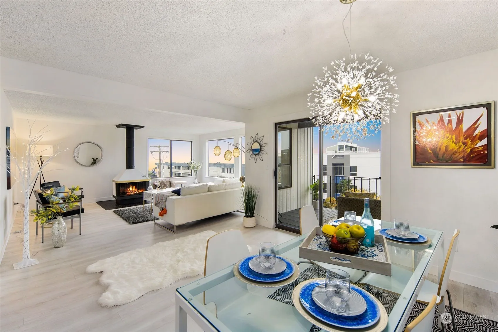 Stunning, top floor corner best unit of the complex. Smell the Marine air & Enjoy water views of the sound, Mt. Rainier form every every room. Walk to the waterfront, fish off the pier, dinner at Anthony’s farmer’s market, music in the park. Commuting to Seattle? Catch the newly added ferry service. Impeccably renovated with you in mind to start living the perfect lifestyle from day One. All designer finishes, kitchen w/quartz ct, soft close cabinets, Top of the line appliances, light fixtures & an epic walk in shower your friends will envy. Bright LR featuring a retro fireplace. catch the most majestic sunsets from your enclosed patio deck/sunroom. Secured building, elevator, Pet Friendly. Join this amazing community for easy good living.