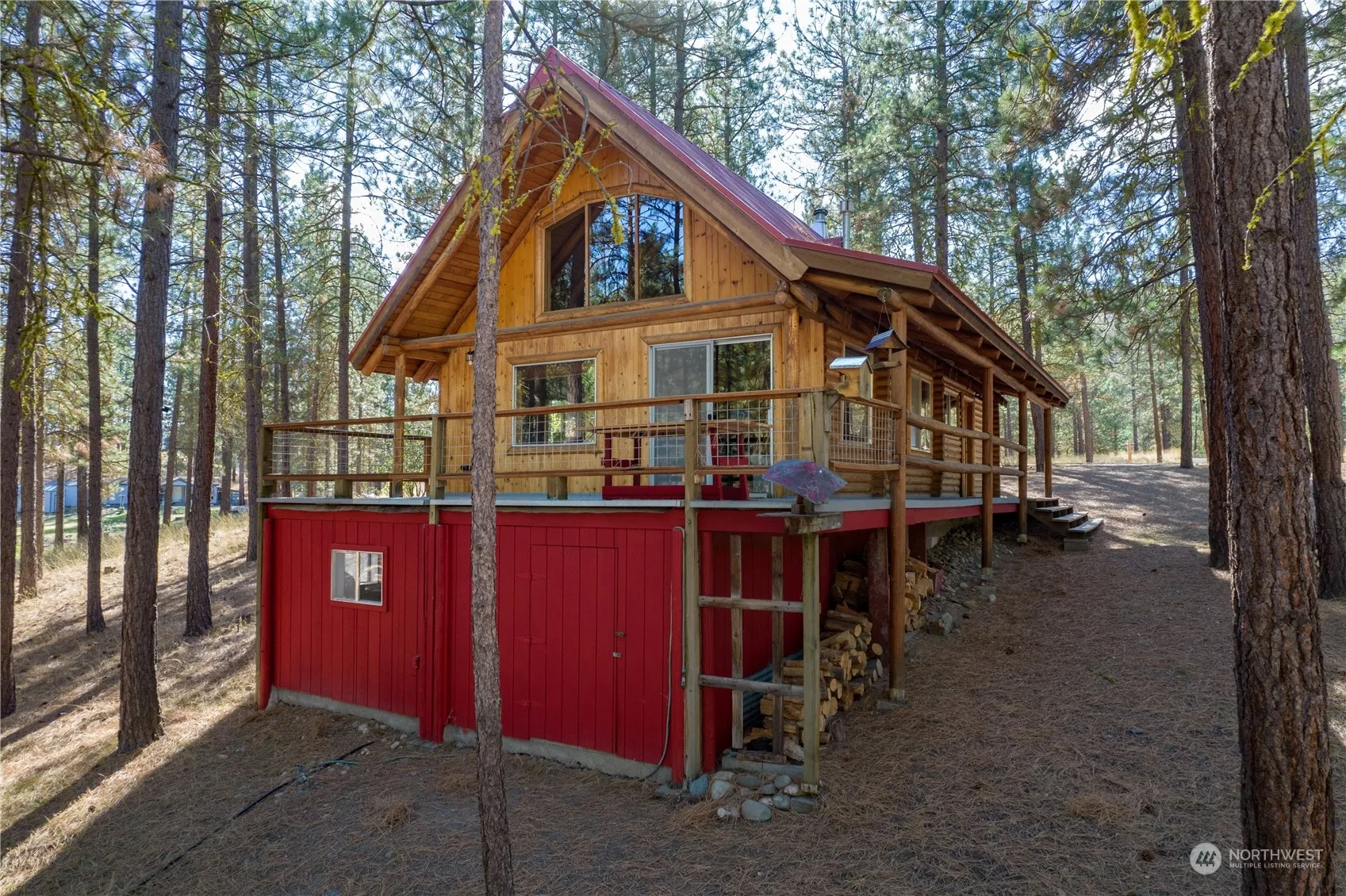 Wonderful log cabin set amongst pine trees on over 2 acres. Solid home featuring one bedroom plus loft living space. There are two fireplaces to keep the home cozy. Enjoy your great room that opens up to the large deck – perfect for entertaining or spending Fall evenings on. Plenty of room for toys and storage in the spacious detached garage/shop with carport as well as the unfinished basement. Great proximity to town and trails. Cool down in the community pool in the summer as well as soak up the year round, near by recreation in the Methow Valley like hiking, biking, fishing, hunting, & skiing. This cabin would make for great full time living or be a wonderful vacation house with easy lock & leave maintenance. Welcome home!