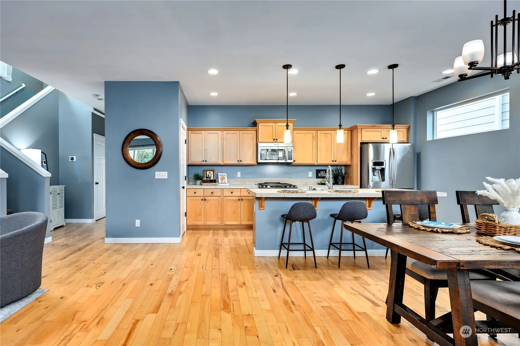 Welcome to your low maintenance home in the desirable Silverleaf neighborhood! This beautifully maintained home boasts the perfect blend of comfort & convenience: 4-bdrm, 2.5-bath. Kitchen w/ shaker cabinets, large island, SS appliances, & gas range. Enjoy the hardwood floors and the warmth of a gas fireplace. Primary suite spacious w/its vaulted ceilings, walk-in closet, & luxurious 5-piece ensuite bath. The other bedrooms are larger in size. 2-car attached garage, tankless hot water heater & fully fenced yard w/turf & large stone paver patio. Community features sidewalks, picnic area, greenspace, guest parking & playground. Coveted CK school district! Located by easy HWY access, shopping, downtown Silverdale, waterfront, & between bases.